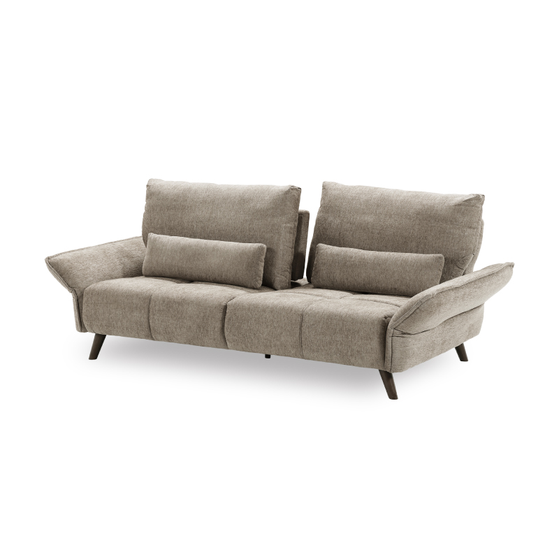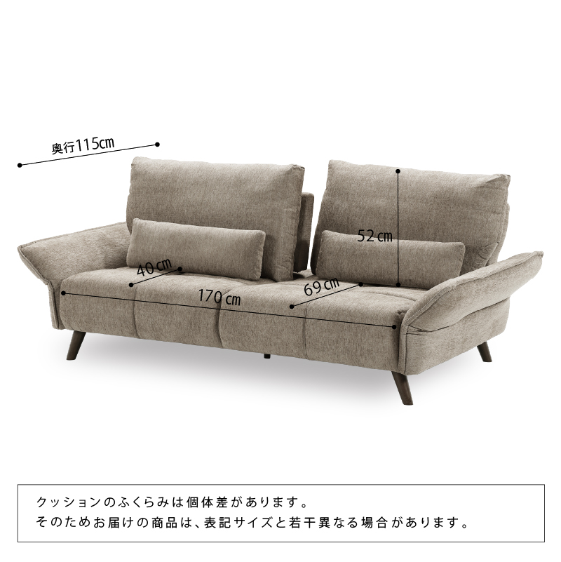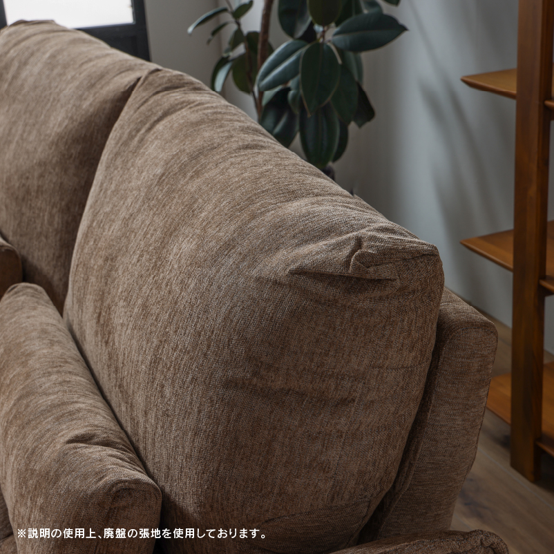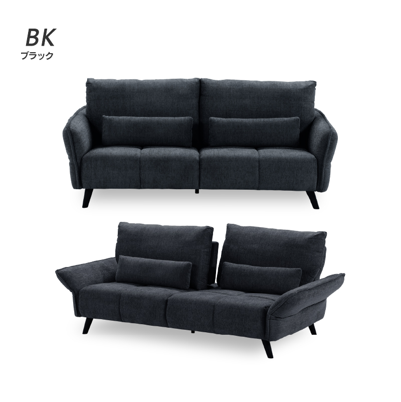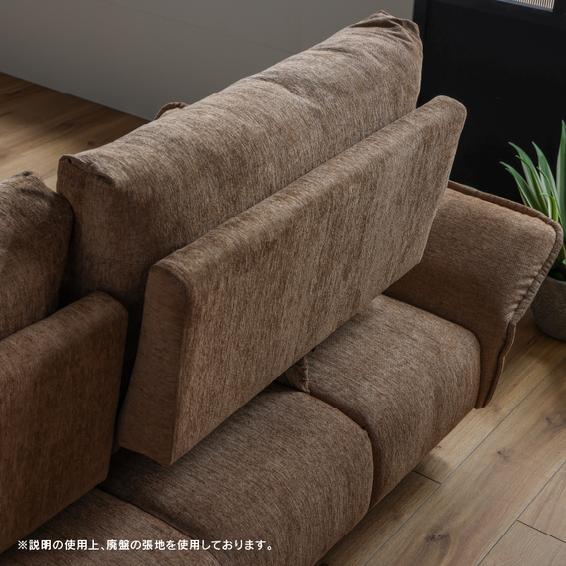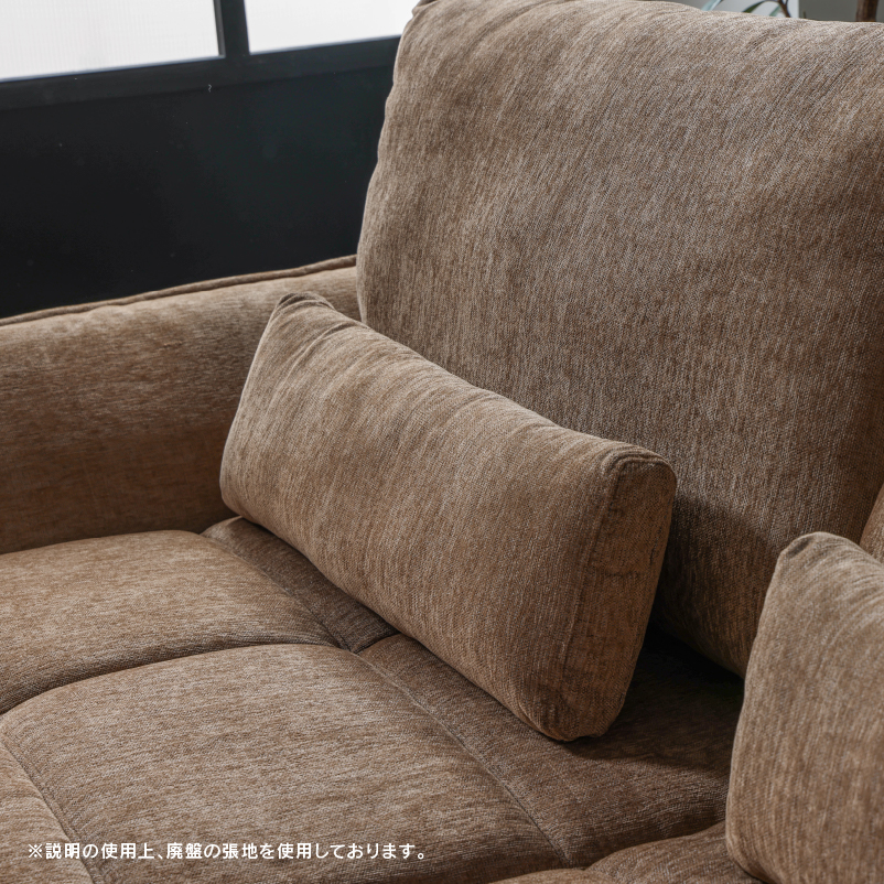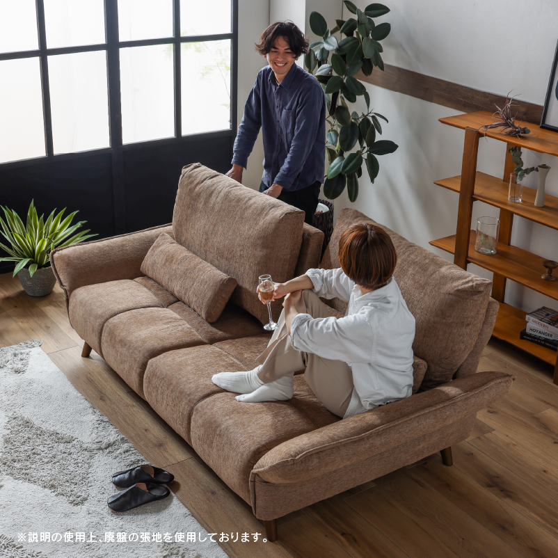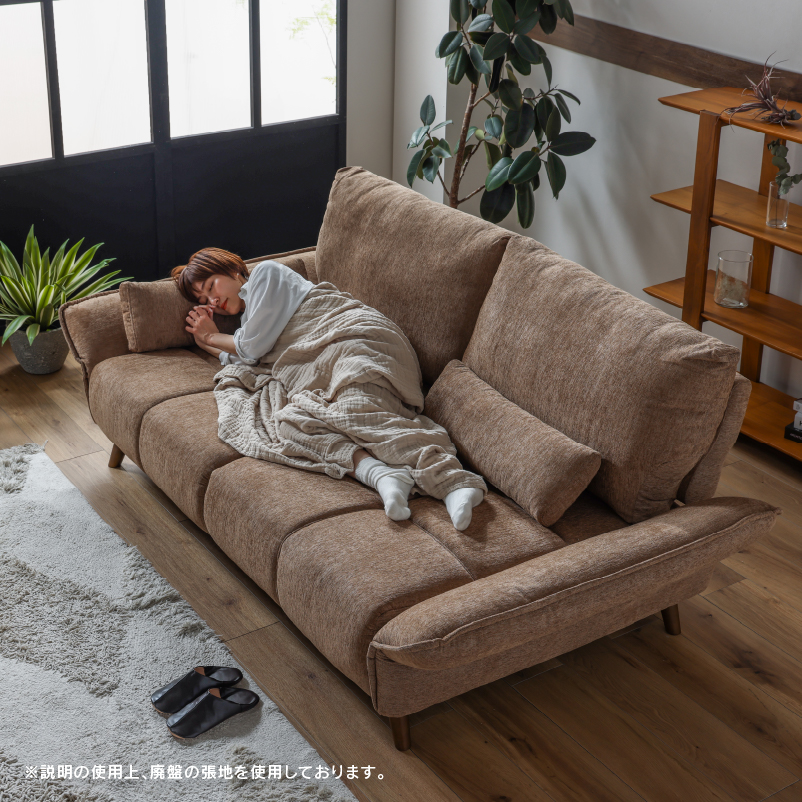 商品情報 肘と背もたれが可動することで座面が広々使える3人掛けソファです。 クッション2個付き。お掃除ロボット可。