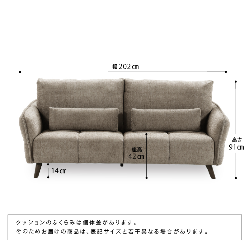 商品サイズ 幅202.0 × 奥行115.0 × 高さ91.0cm