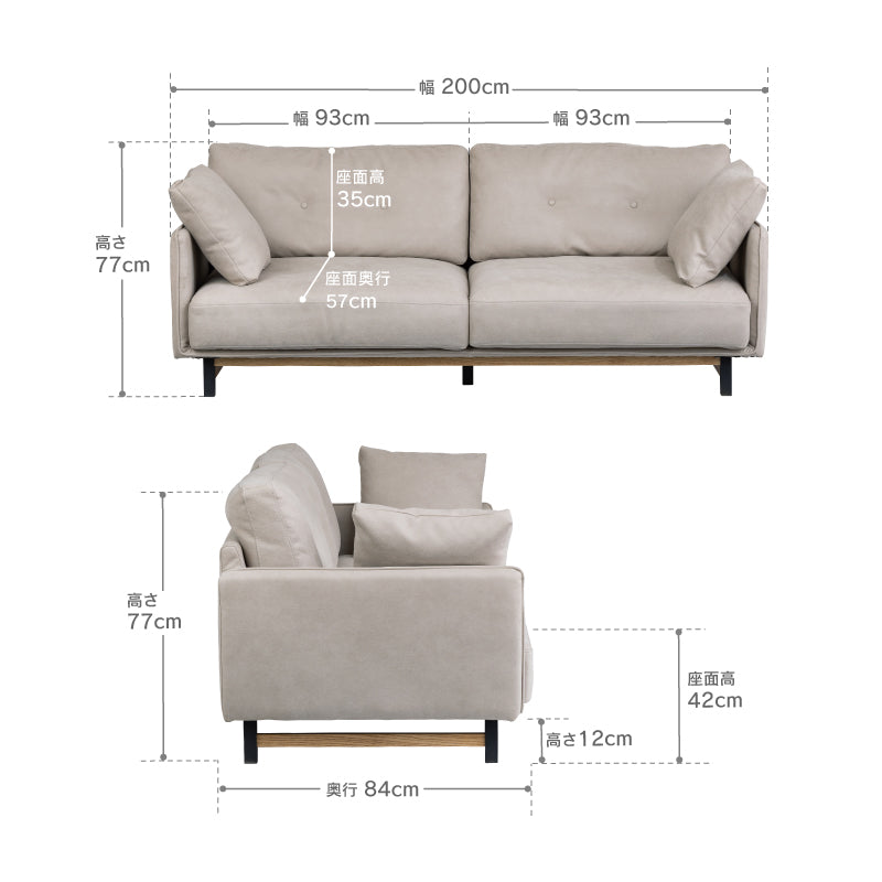 ボレアス 3人掛けソファ 幅200cm プラチナグレー 商品コード 445495
