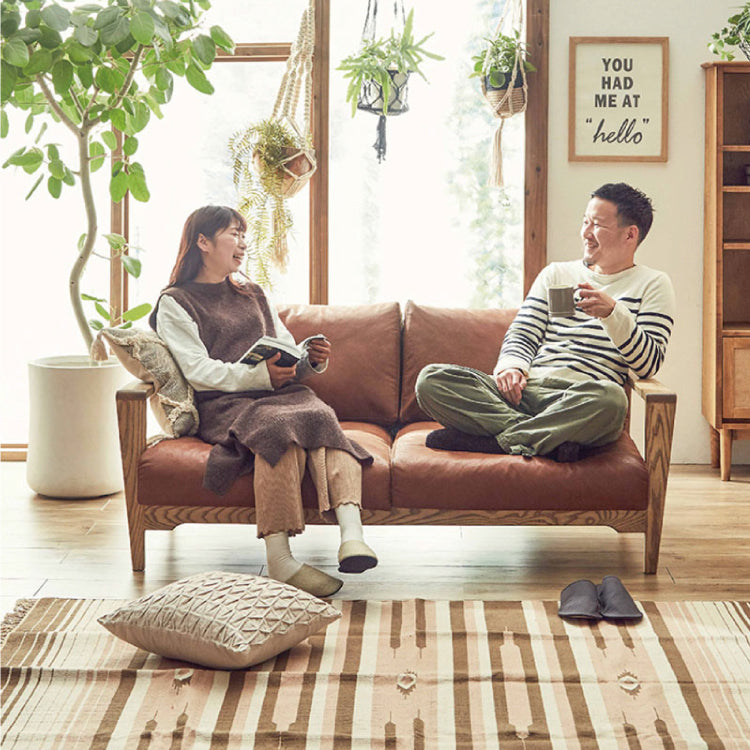 商品情報 フレームにはアッシュ無垢を、背もたれにはアイアンを組み合わせており、また、後ろからの見た目も綺麗に仕上がっているため、ダイニングとリビングの間仕切りとしてもご使用いただけます。 座面の奥行きが55cmと広いため、大人の男性があぐらをかいたり、仰向けで寝転んでもゆったりとくつろぐことができます。