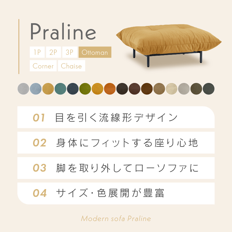 プラリネ オットマン 幅92cm セメント 商品コード 481406