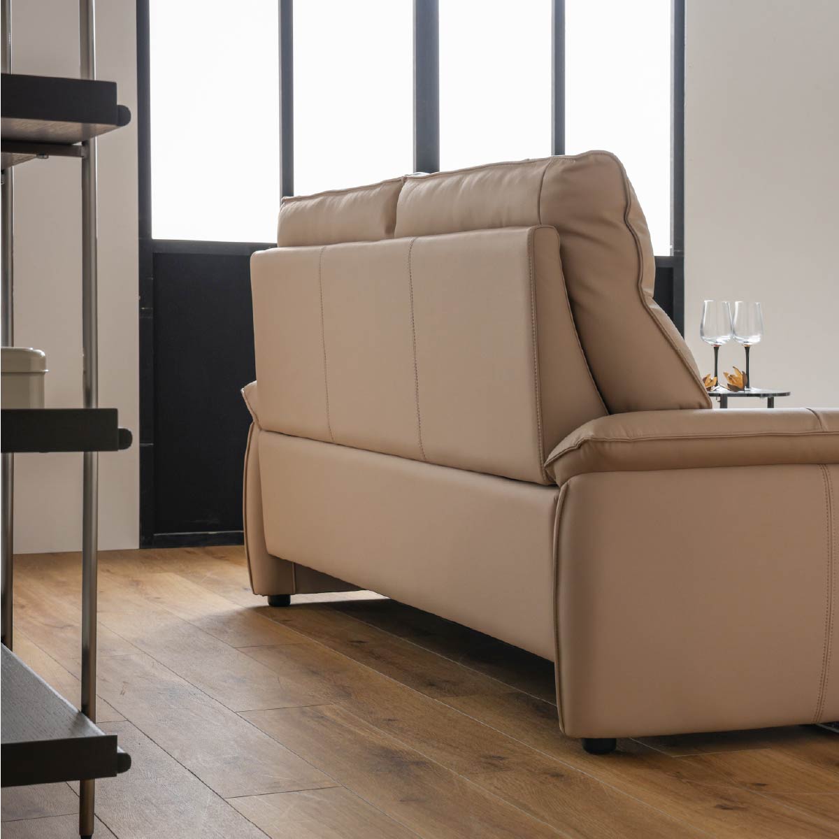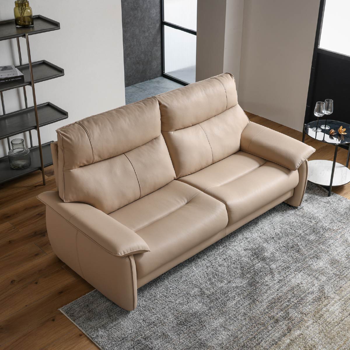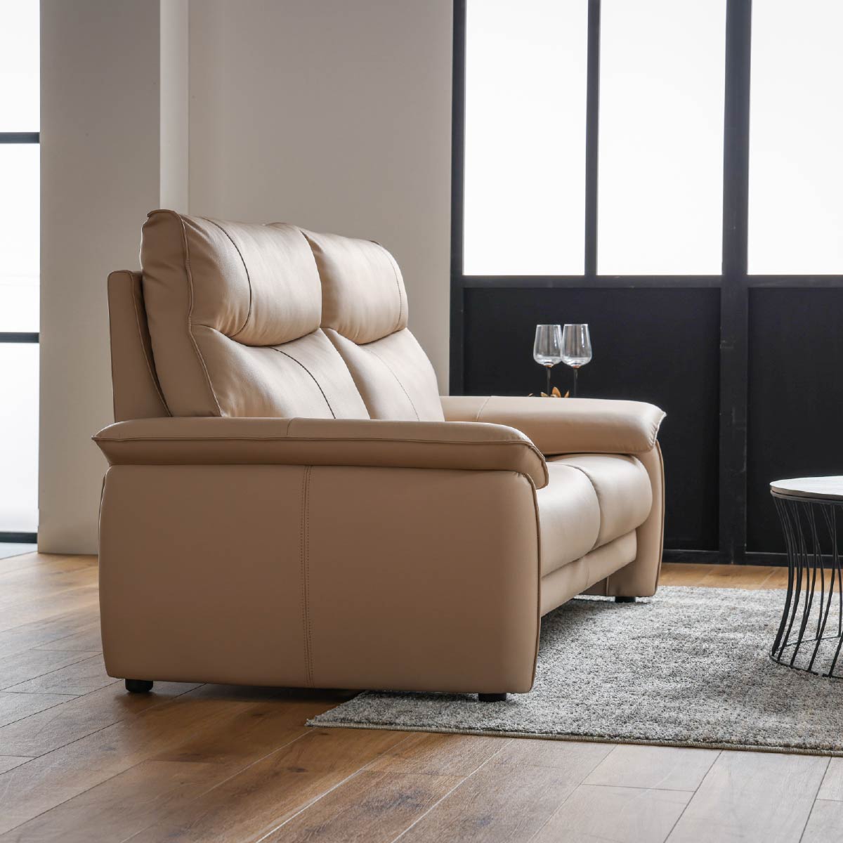 商品情報 上質なリラックス感と現代的なドイツデザインを融合させた逸品です。頭部の位置、背中の角度が計算されたハイバックデザインが、長時間の着座、心地良い座り心地を提供します。座面は深すぎず、女性にも座りやすい適度な奥行を備えています。このソファのボリューム感と洗練されたデザインのバランスが、お部屋に洗練された快適な空間を創出します。