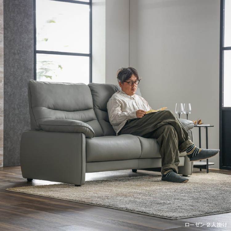 ローゼン 2人掛けソファ 幅158cm ファインレザーテックス シアーベージュ 商品コード 417824