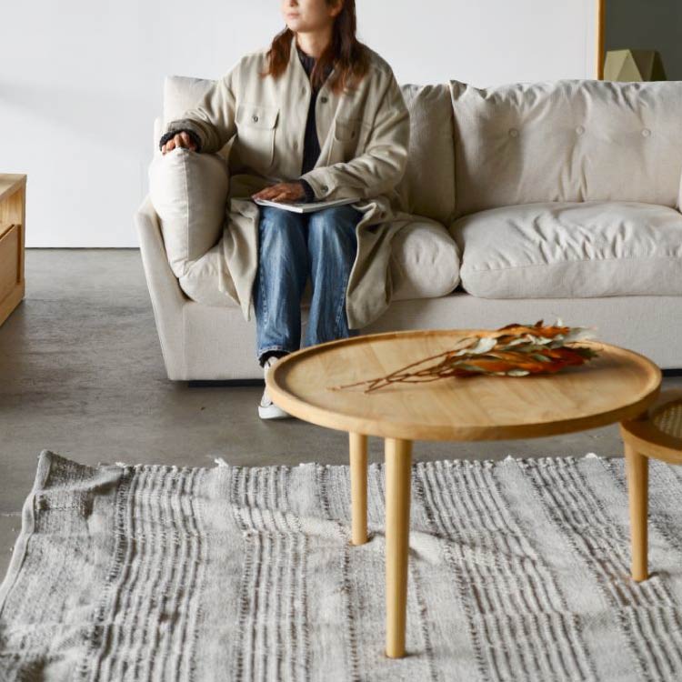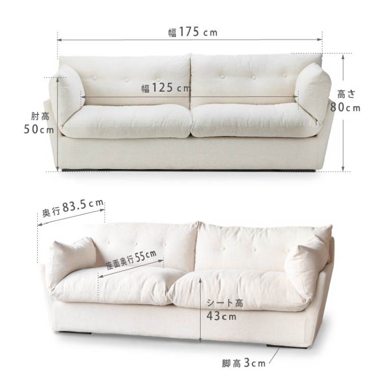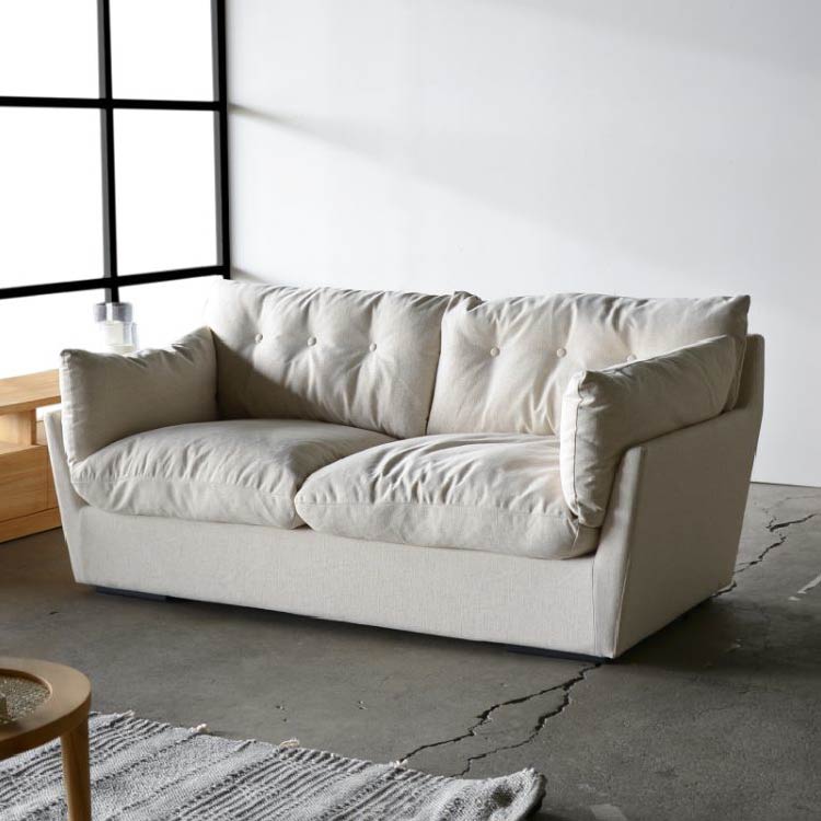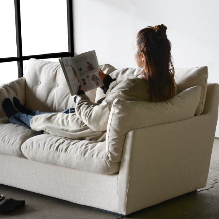 商品情報 ふんわりとした雲のようなイメージのくつろぎソファ。 心地よく身体を包み込み込むフェザーのクッションに座ったり寝転がったりしてリラックスできるラフでルーズな雰囲気が魅力です。 まるで雲のような厚みと柔らかさのあるクッションが身体をやさしく包んでくれます。 ナチュラルで優しいリネンを織り交ぜたミックス感のある生地を使用しています。フルカバーリング仕様でドライクリーニングでのお手入れができます。