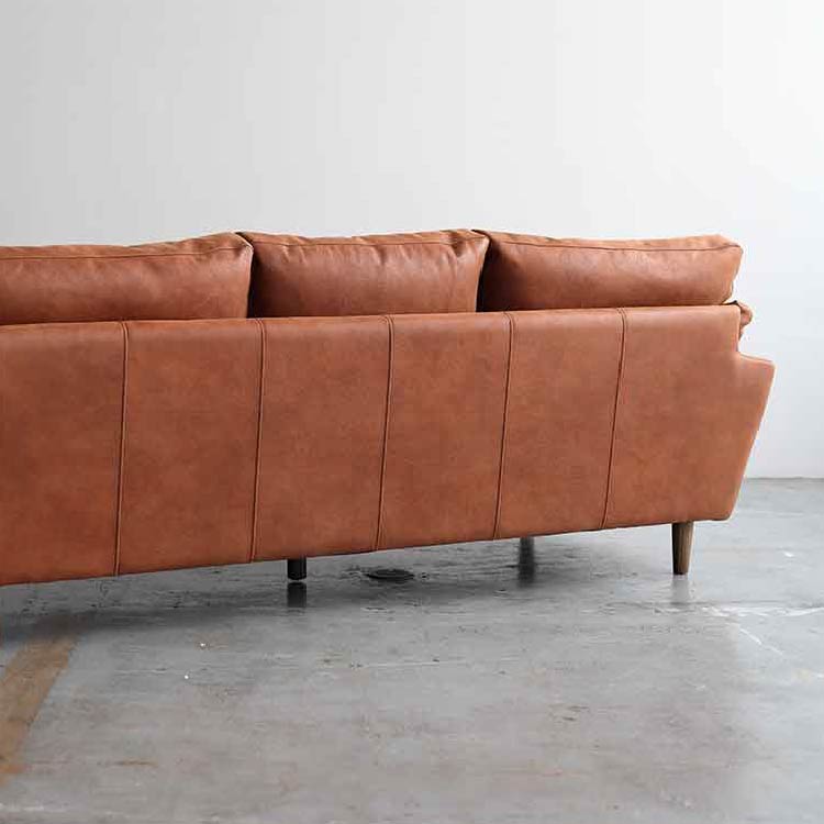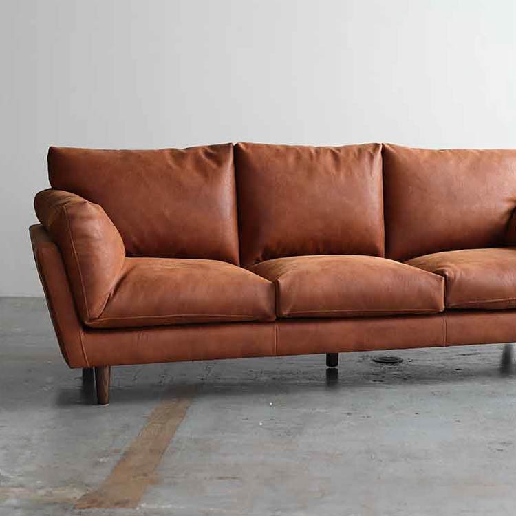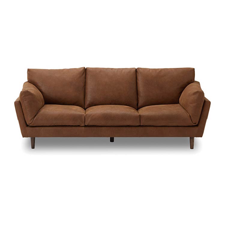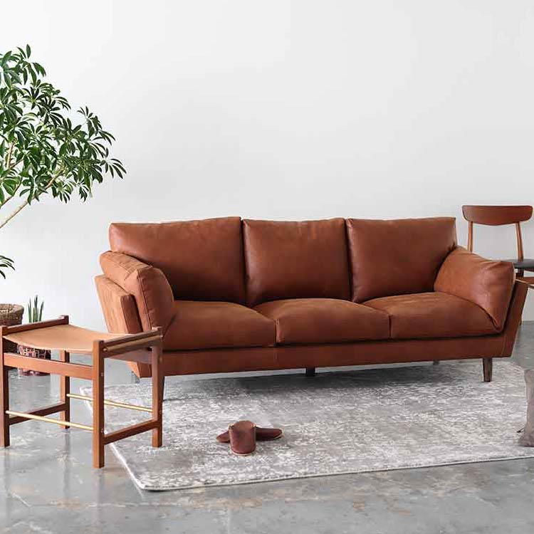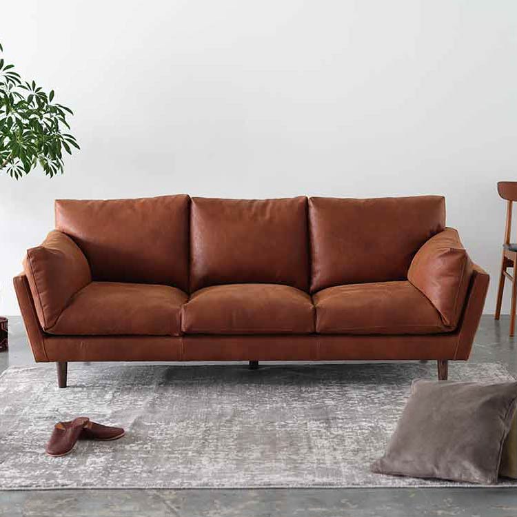 商品情報 北欧テイストに合わせやすいベーシックなソファ。 すっきりしたラインの本体に、クッションはウレタンフォームとフェザーでふわっと柔らかい雰囲気。 座面と一体になったボリューミーな肘クッションが、身体を優しく包み込みます。 張り地には、革本来の質感により近づけ、厚革のような重厚感を醸し出す、メンテナンスに優れたスーパーレザーテックスを使用しています。