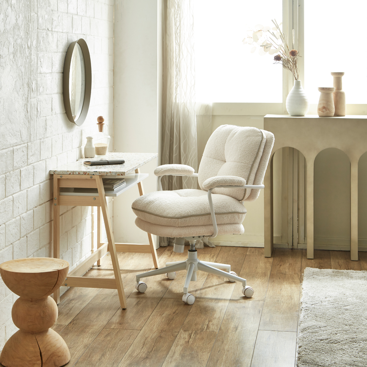 書類やノートパソコンを収納できる棚が付いているので、机の上をきれいに保てます。