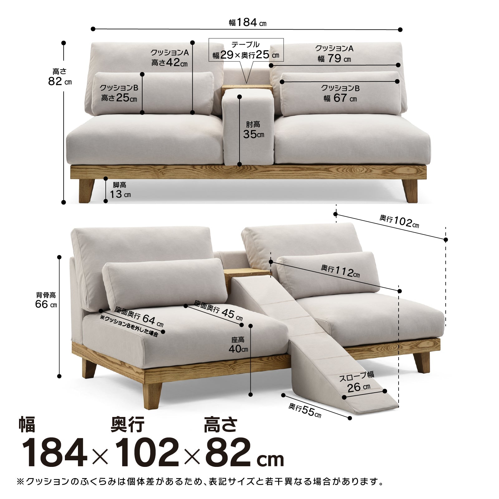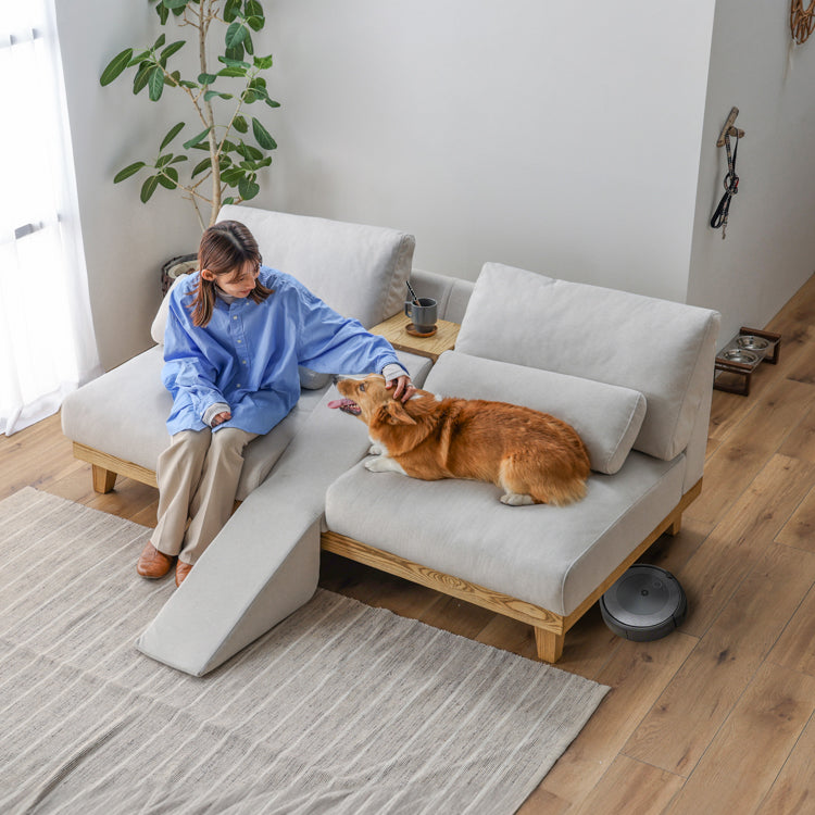 フラッフィル 3人掛けソファ 幅184cm スロープ付 ペット対応 カバーリング ストーンホワイト 商品コード 445580