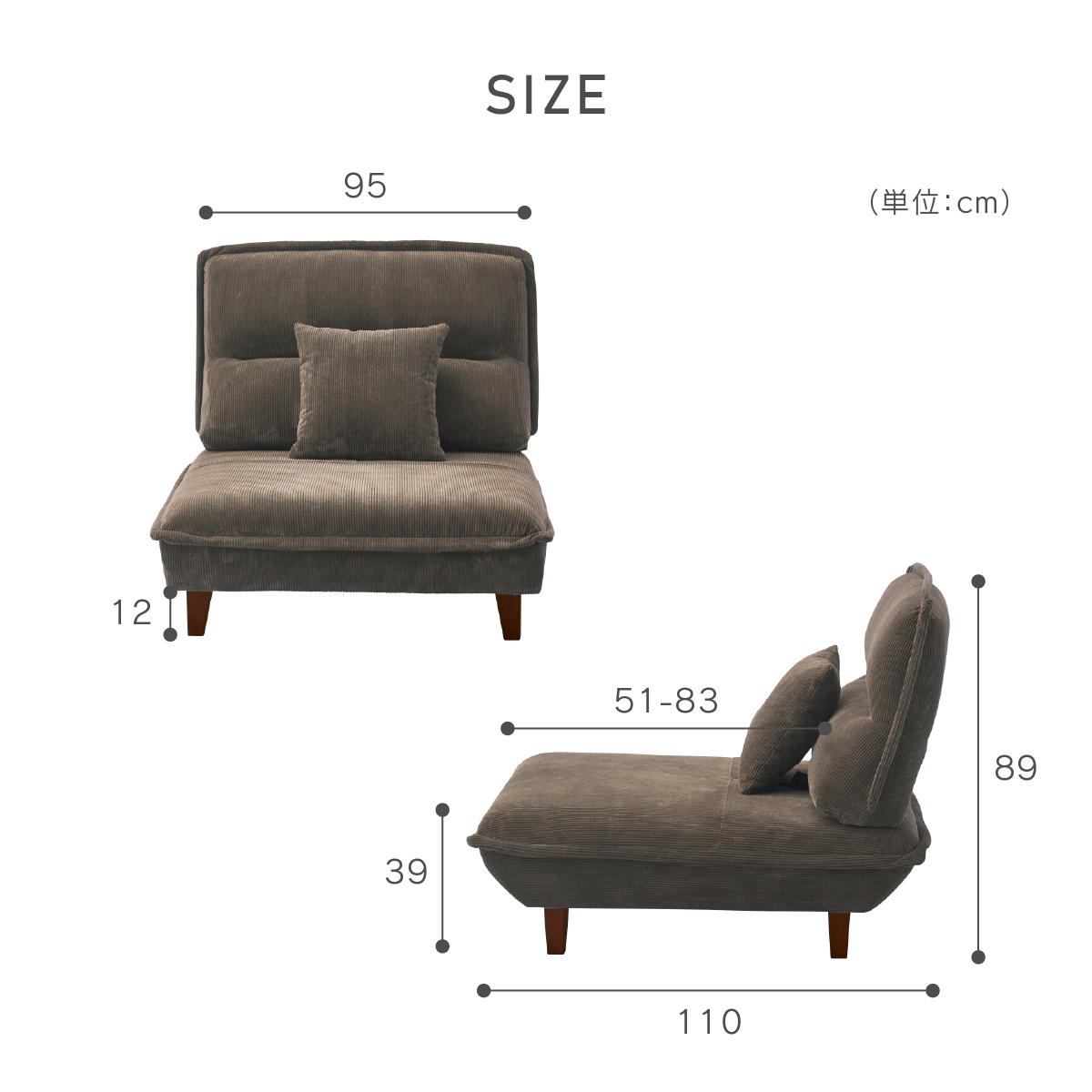 ※1.5人掛けは背もたれ1つです。