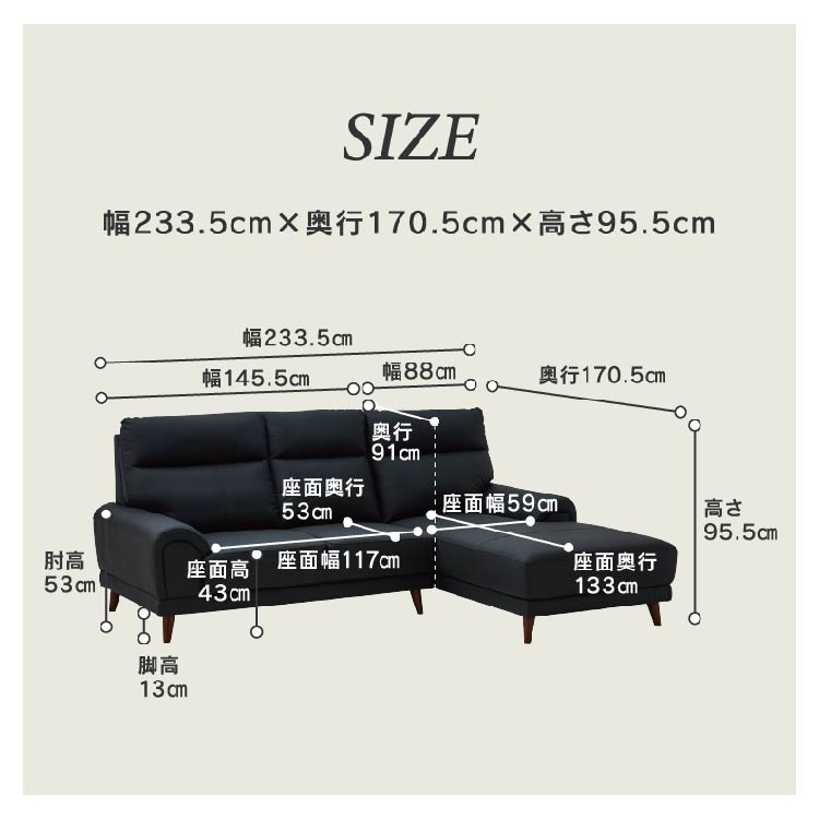 プリバ カウチ 幅233.5cm ブラック / 左カウチ 商品コード 454115