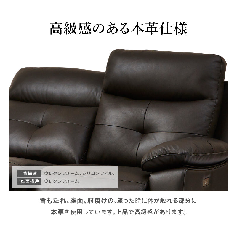 商品情報 背もたれ、座面、肘掛けに本革を使用した電動モーションソファです。
