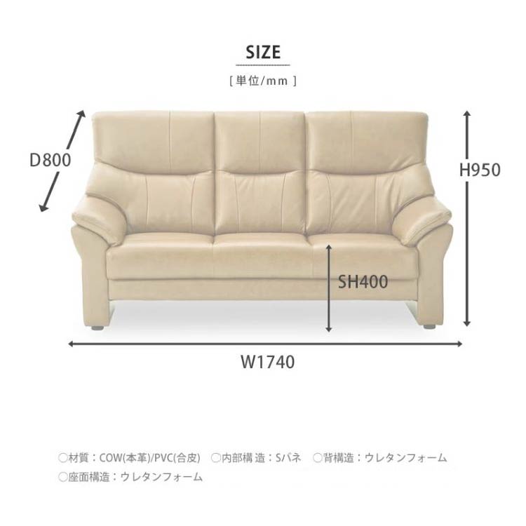 サイモン 3人掛けソファ 幅174㎝ ベージュ 商品コード 281318
