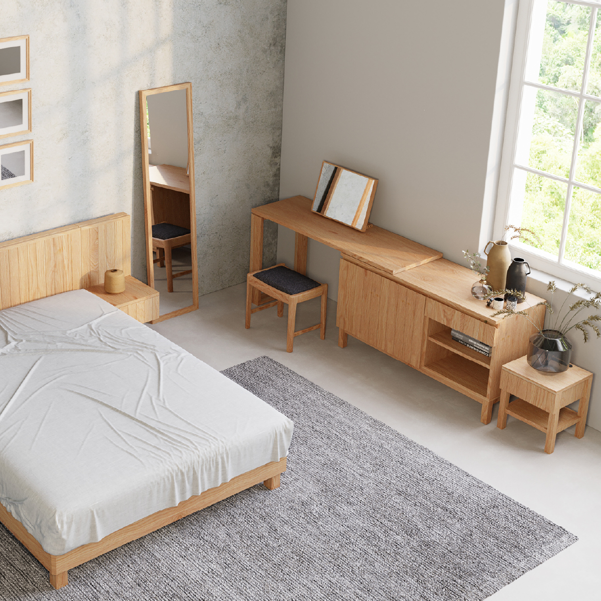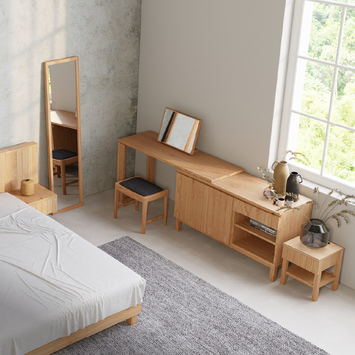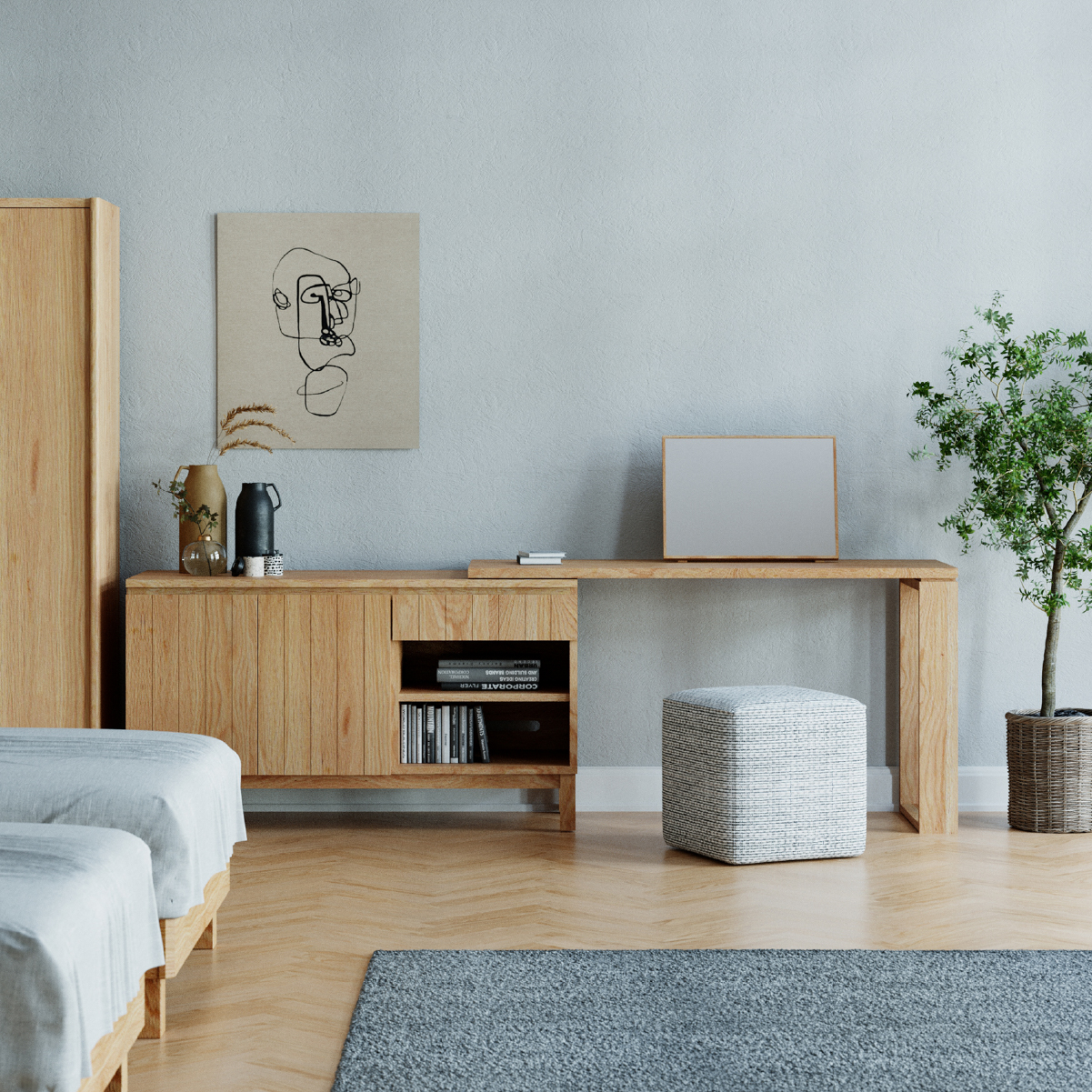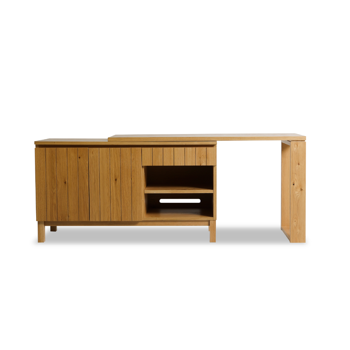 ナチュラルで軽やかな印象のキャビネットデスク。節有オークの美しい木目が特別感を演出します。