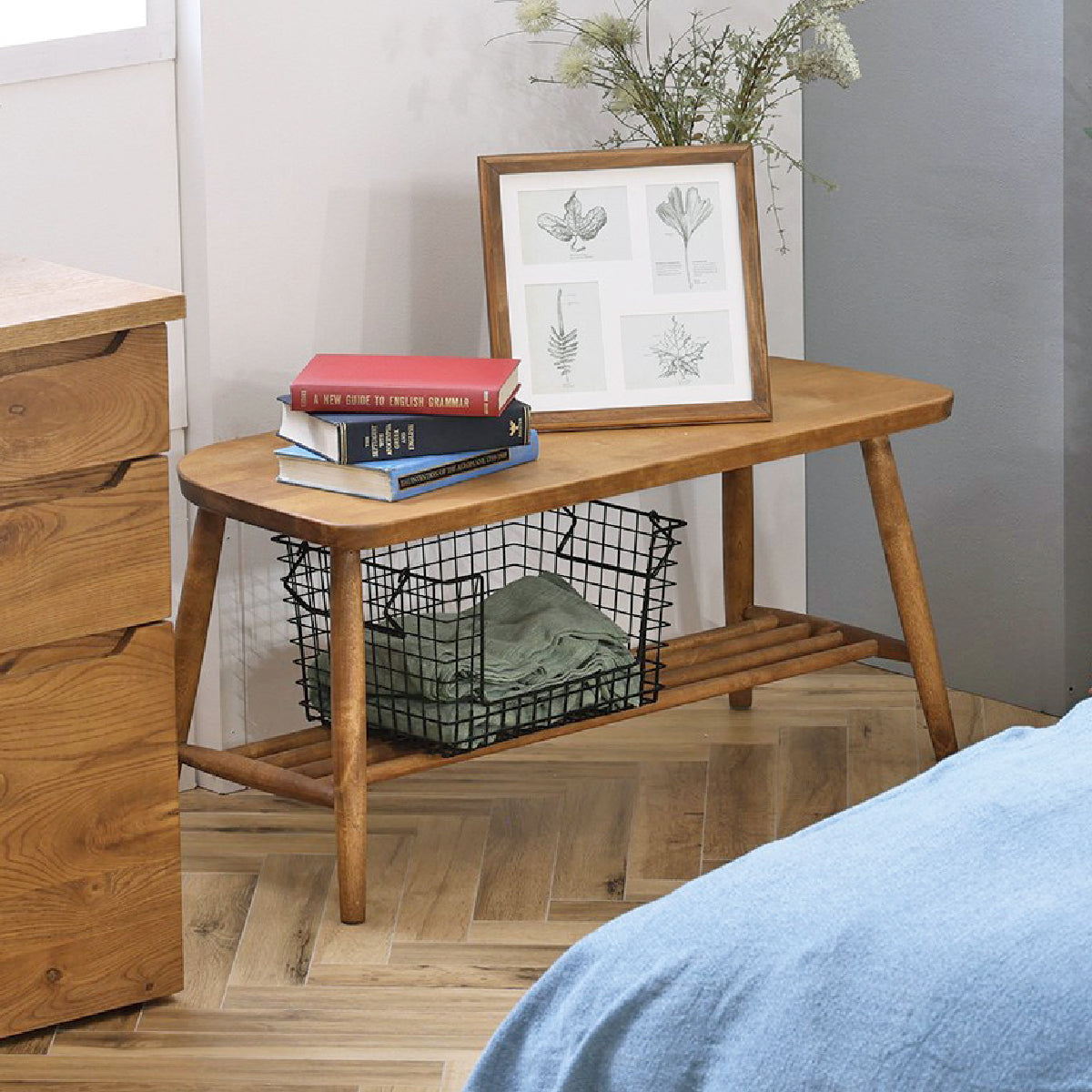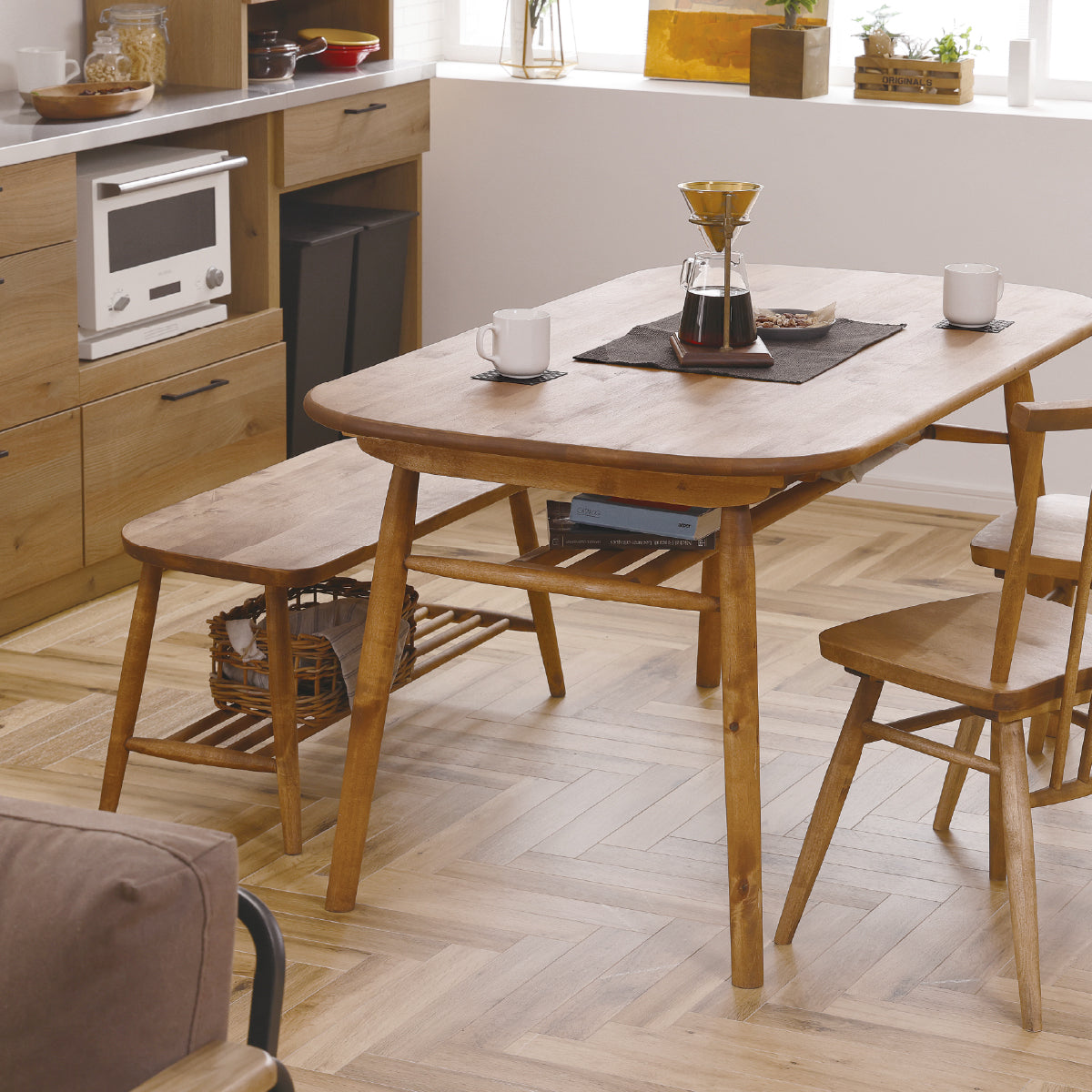 商品情報 バーチの無垢材をふんだんに使用したベンチ。角に丸みのある台形の座面が特徴です。座面下にはラック収納が付いており、お気に入りの籠を置くこともできます。シンプルなデザインなので、低めのラックとして窓下に置いて物を収納したり雑貨を飾ったりすることもできます。