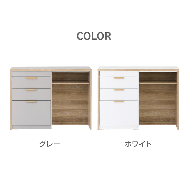 商品情報 ツートンカラーが特徴のキッチンカウンター。作業台としても使えるスライドテーブル付きです。また、便利なコード穴もあります。グレー色とホワイト色の2色展開で、スライドカウンタータイプとダストタイプの2型から選べます。