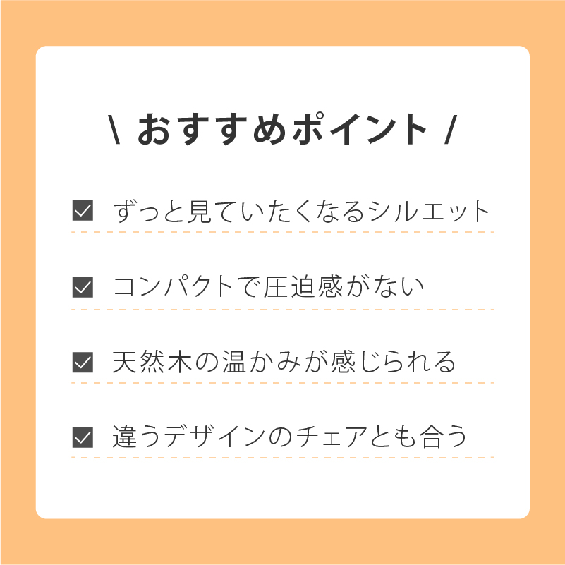 後ろからの姿が最高に可愛いです! 背中が丸型のマーガレット、ノラの肘掛け付きの椅子、テーブルも席家具さんのものを愛用しているので、四つ合わせるとぴったりです! 座り心地、軽さも良く、末長く使って行きたいと思っています! 新築の家に置かせていただき、毎日見惚れながら過ごしています♪椅子を少しずつ増やしているので、また次も席家具さんで見つけたいと思っています。