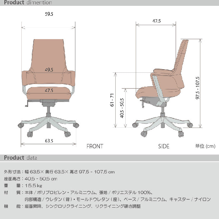 材質 張地/ポリエステル、脚/アルミポリッシュベース、キャスター/ナイロン