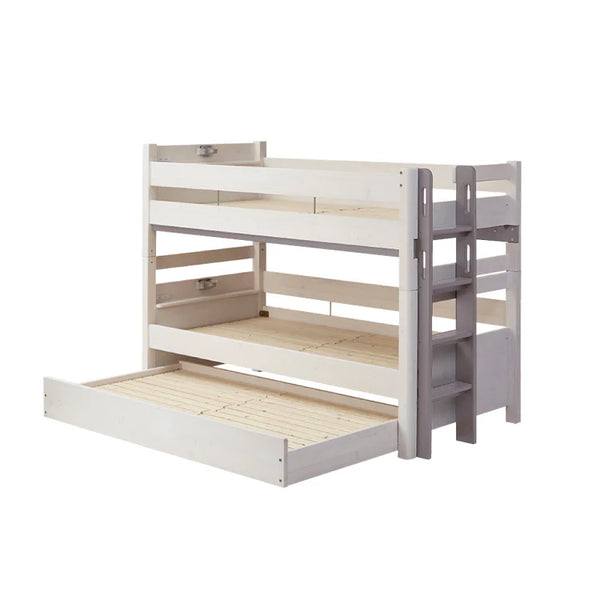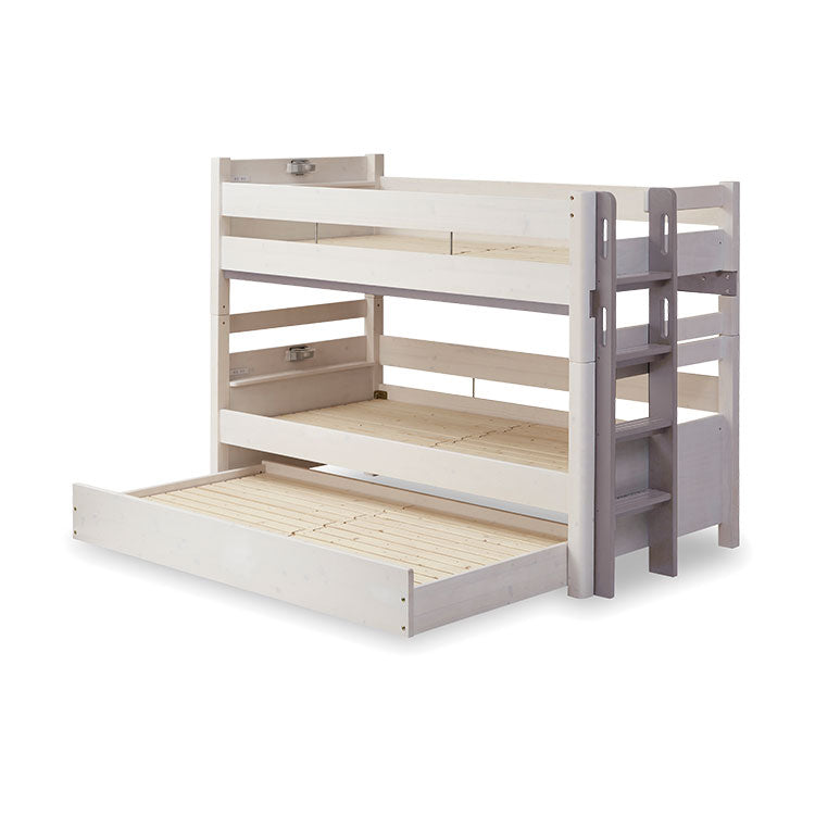 商品情報 色は【ホワイト/ブラウン・ホワイト/ウォームグレー・ホワイト/モスグリーン】の3色、サイズは【2段・3段】の2展開です。ヘッドボードはLEDライトと2口コンセント付・静止荷重は500kgの特許を取得した安心安全設計・サイドフレーム下からの高さ【10・15・20・25・30cm】の5段階から選べます。ハシゴは左右で取り付け可能・ベッドは上段と下段を連結せずにシングルベッドとしてもお使い頂けます。