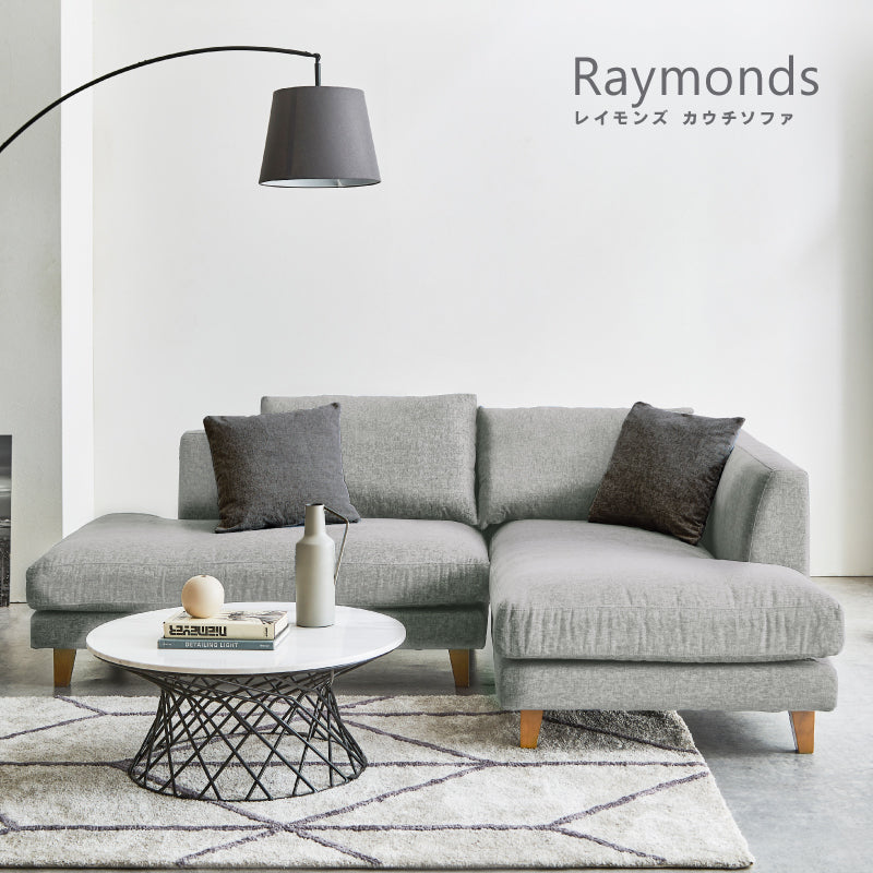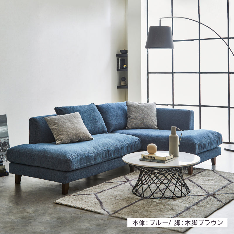 レイモンズ カウチソファ 左カウチ 幅234㎝ ブルー / 木脚 ブラウン 商品コード 295942