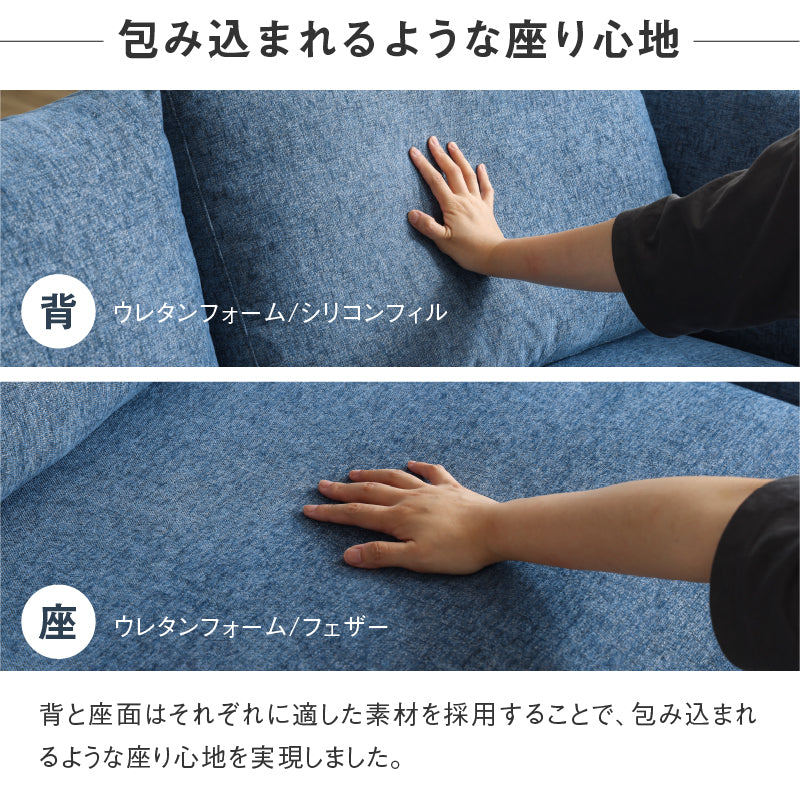 ソファがリビングのメインになる存在感があります。質感もよく、クッションが2つついてるのがアクセントになって可愛い。このタイプだとどうしても仕方ないのですが、すこしへたるのが早そうだな…と思ったことで星4つです。ですがそれも一緒に過ごした時間の経過ということでお気に入りにしていこうと思います!