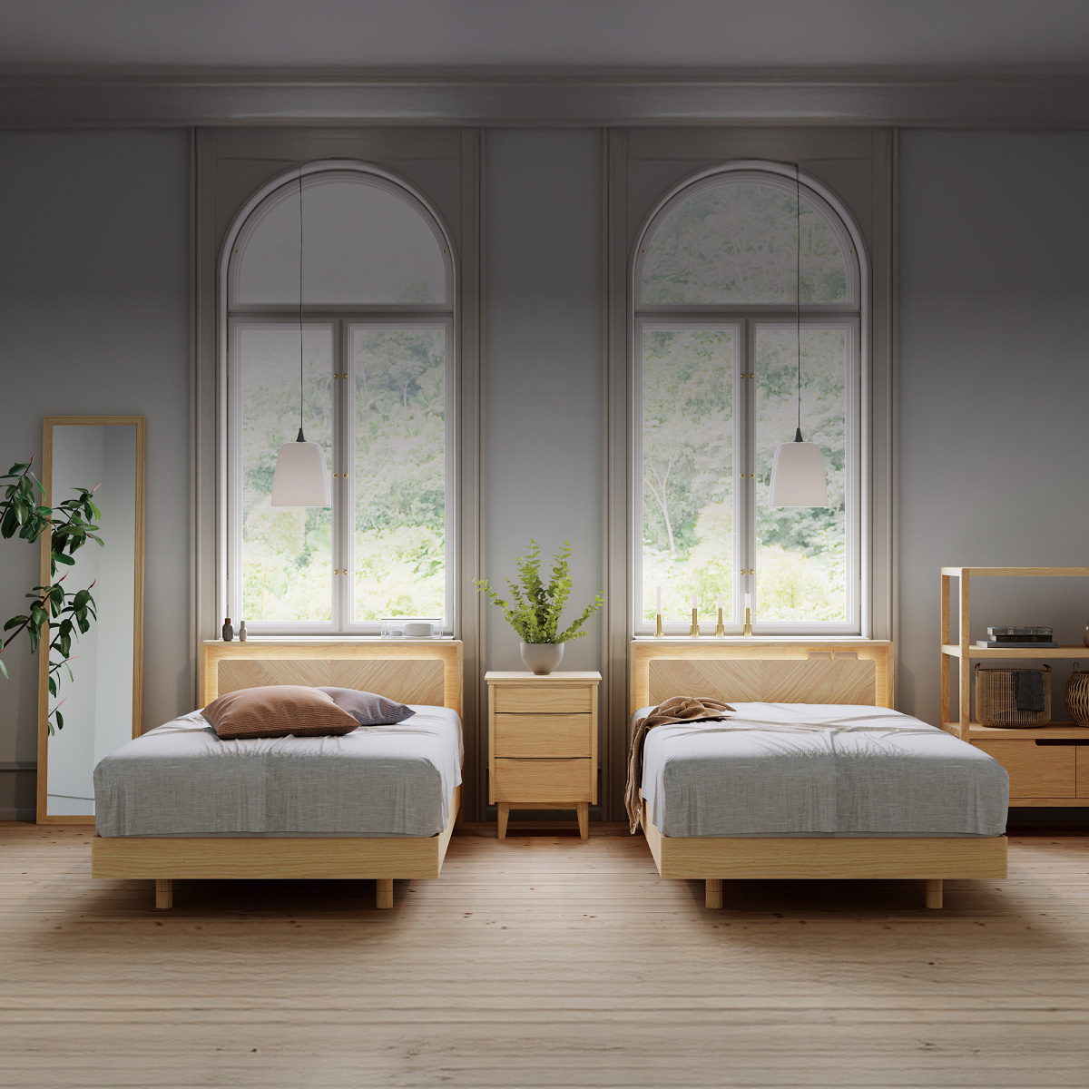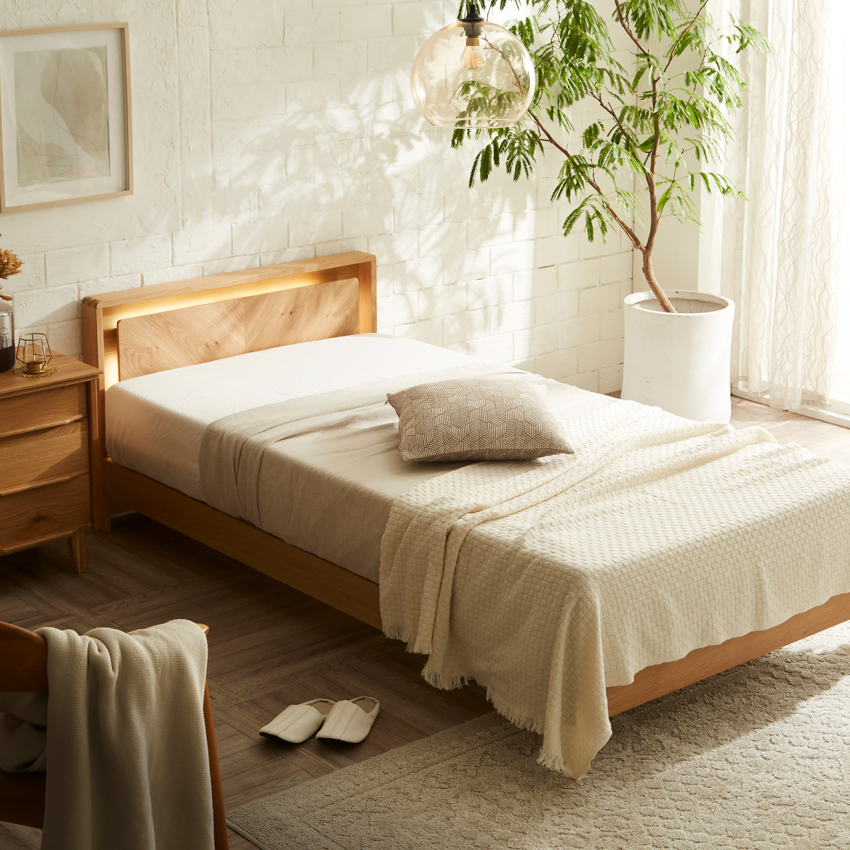 床板を組立設置する前に、ベッドフレームがしっかり組み立っているかご確認ください。