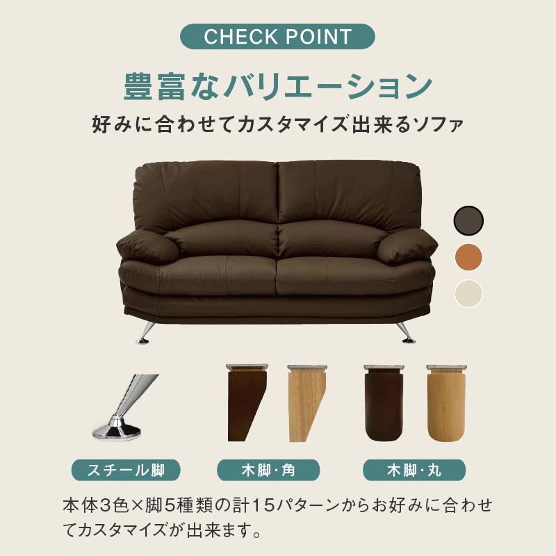 スイート⑧ 2.5人掛けソファ 幅168cm 革 / 本革ダークブラウン / スチール脚A 商品コード 364373