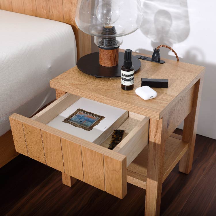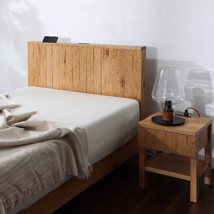 商品情報 ベッドフレーム「ノアナ」に合わせたスリットのデザイン。 ナチュラルで軽やかな印象のナイトテーブルです。 コンパクトなデザインで省スペースにも置けるベッドサイドチェストです。 天板には2口コンセントが付いており、携帯や腕時計などの充電ができます。 コップやスマホなどを置く、ソファの横のサイドテーブルとしてもお使いいただけます。