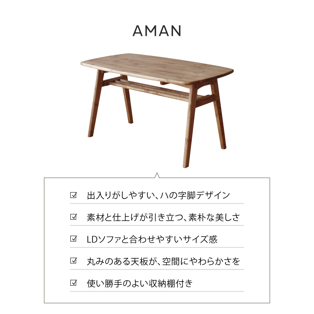 ダイニングスペースがあまりないので、幅120cmの小さいタイプにしました。 バーチ材にオイル仕上げなのでおしゃれで存在感のあるテーブルです。とても気に入りました。 高さも低めなので、ソファーなどと合わせてもいいですね。