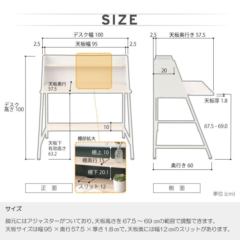 商品サイズ 幅100.0 × 奥行60.0 × 高さ100.0cm