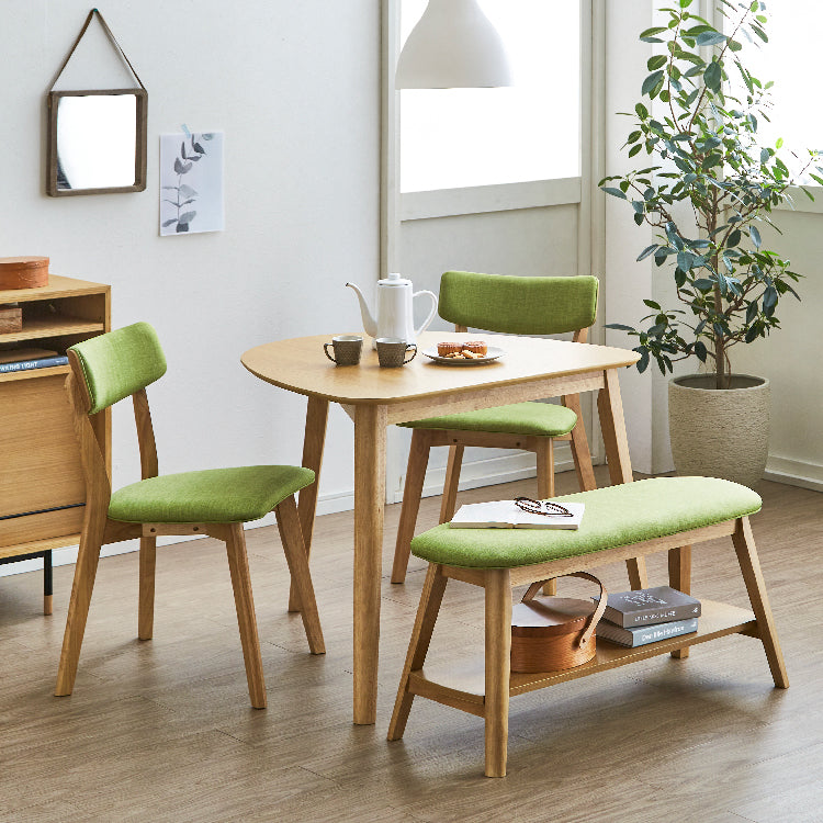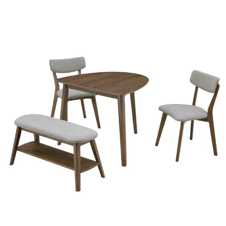 商品情報 三角形のテーブルとチェア、ベンチの展開があり、組み合わせパターンが豊富なダイニングセットです。コンパクトサイズ。