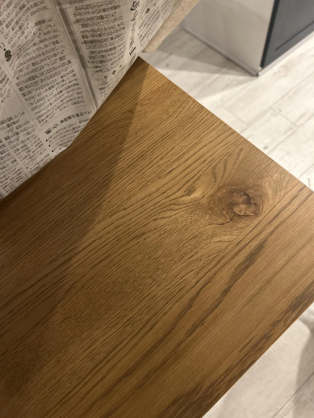 材質 天板:節有オーク突板/脚:ラバーウッド無垢