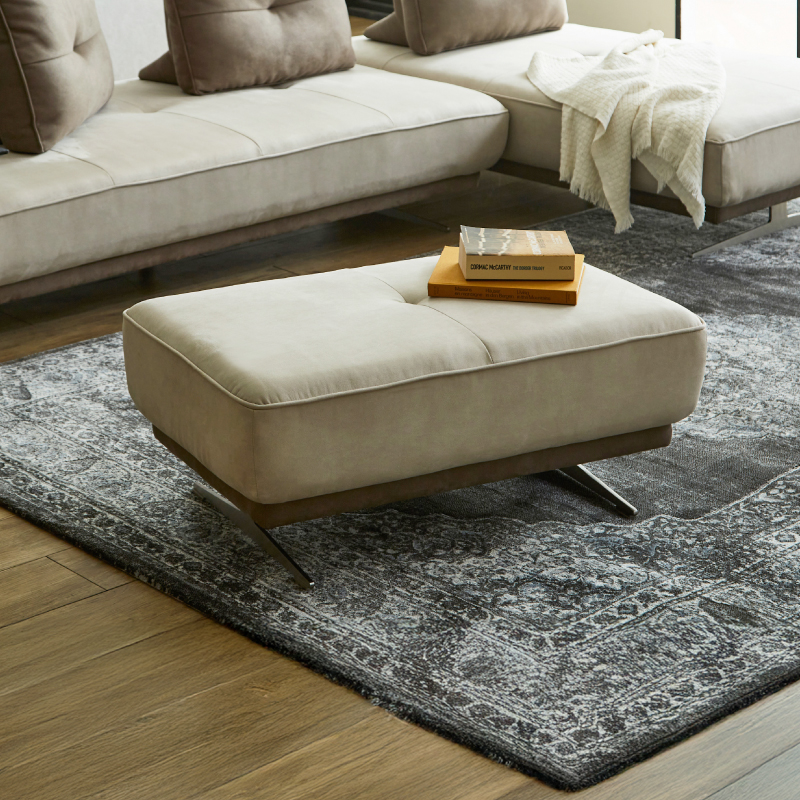 アルフレードⅡ オットマン PLT111 プラチナグレー×PLT112 ヨーロピアングレー(プライムレザーテックス) 商品コード 443376