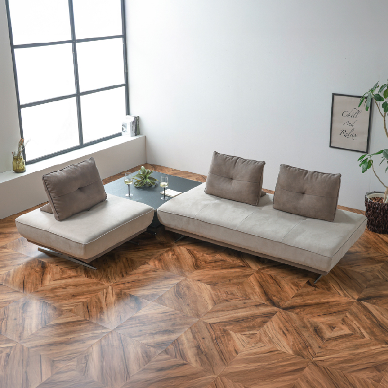 様々なアイテムを組み合わせることで自由にくつろぐことができる、フリースタイルソファ「アルフレード」。