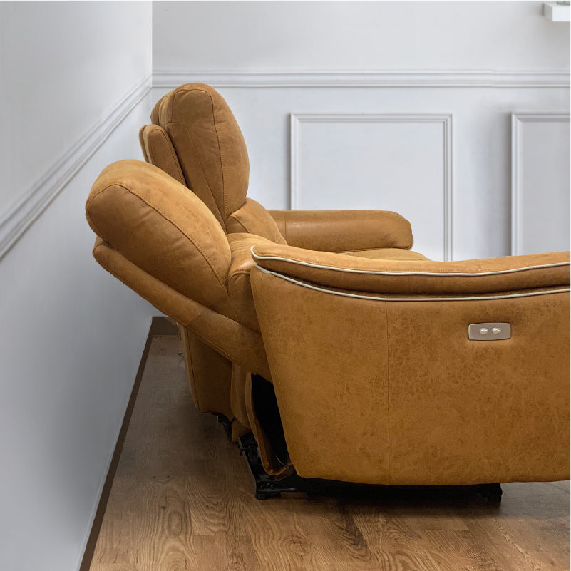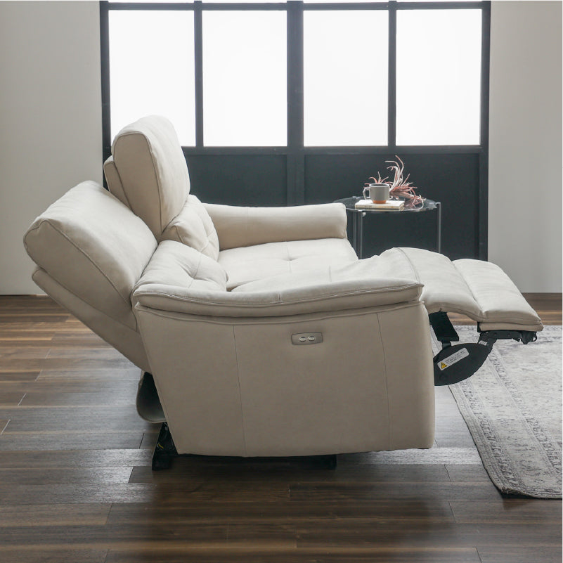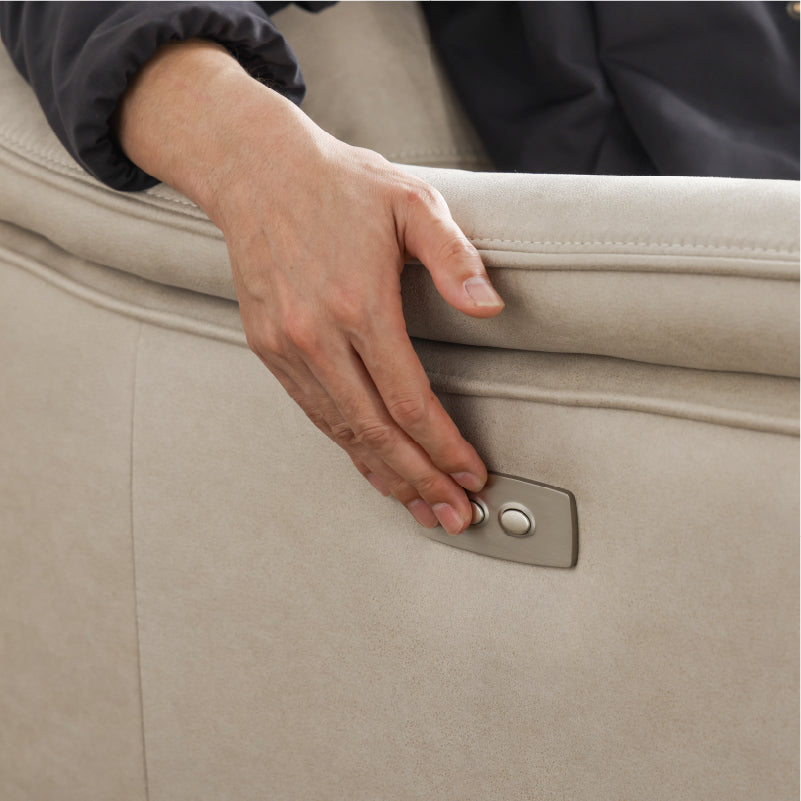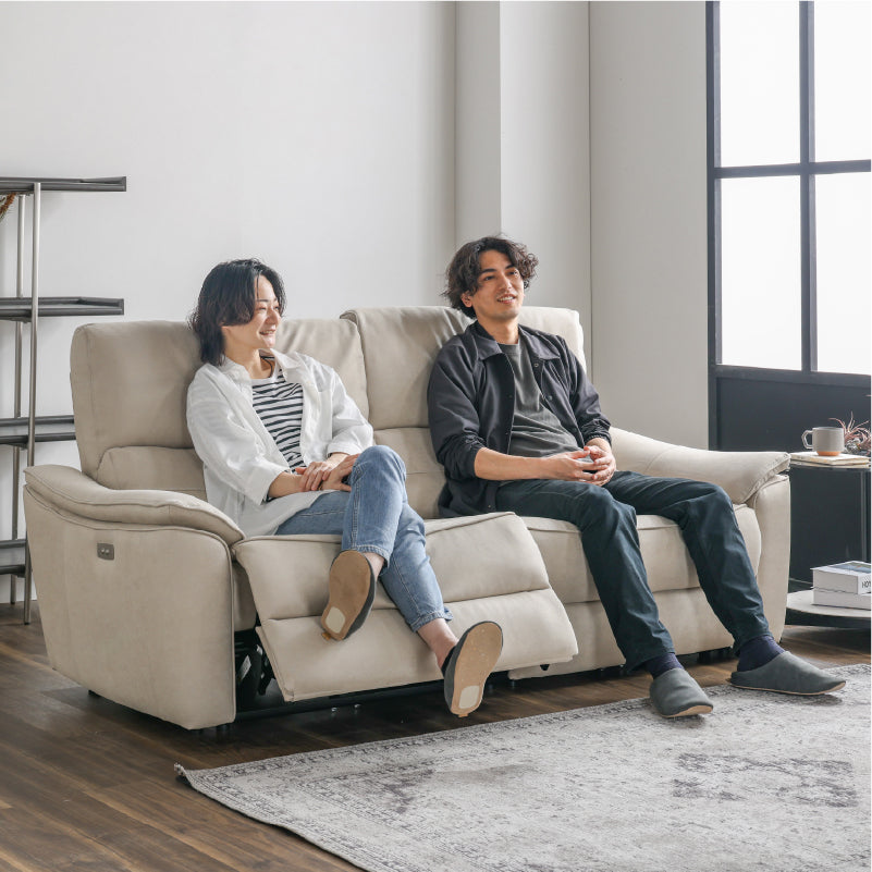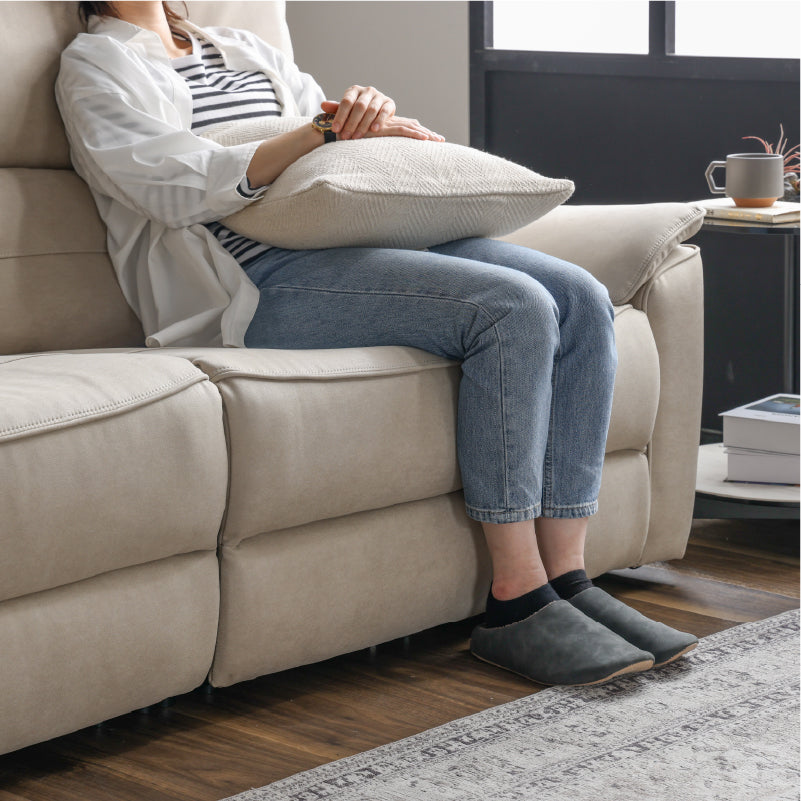 商品情報 イタリアンデザインの電動ソファです。 肘と座面に施したパイピングが、重厚なフォルムの輪郭をスッキリと強調し、他には無いイタリアンな高級感を演出します。3人掛けタイプは中央の背クッションを前に倒すとリモコンや飲み物などを置くことができ機能的。通常の電動モーションソファの多くは座高が45㎝~50㎝近くですが、バッジオは異例の座面高39㎝で小柄な方でも座りやすいのも魅力の1つです。