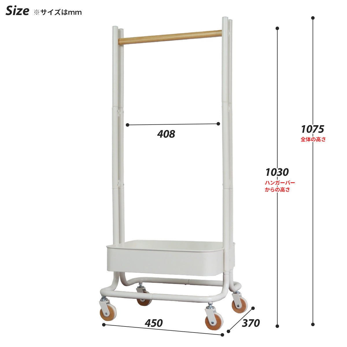 ROSSINI キッズハンガー ラック 子供用 キャスター付き rohr-45 グレー 商品コード 410369
