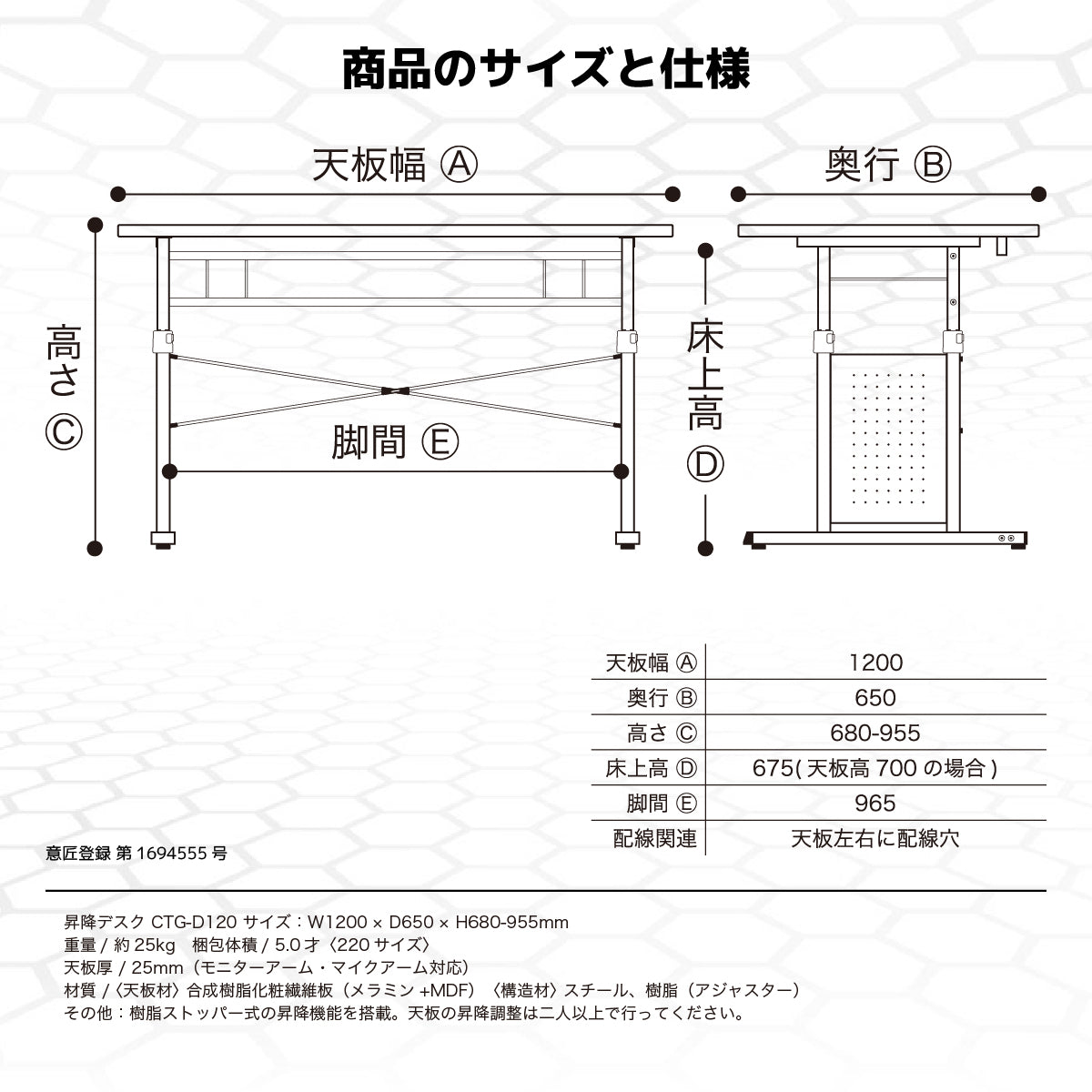 Contieaks CTG- 昇降式 ゲーミングデスク 幅120cm ブラック 商品コード 431828