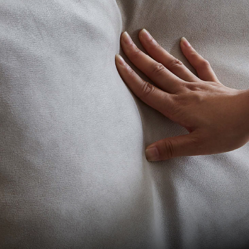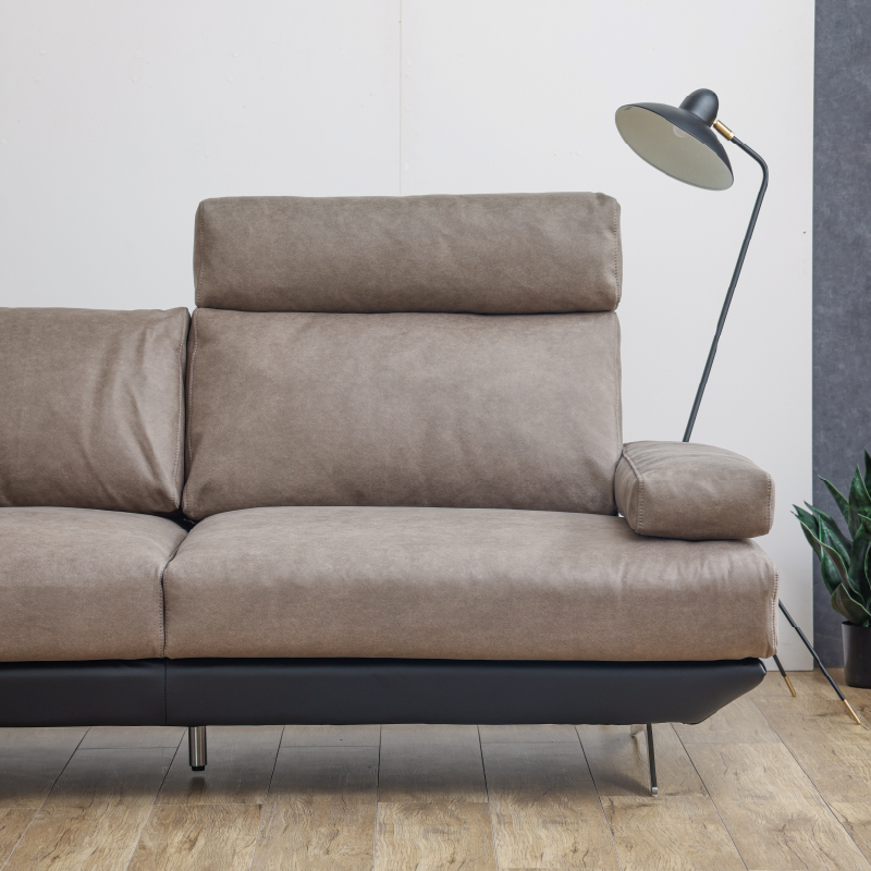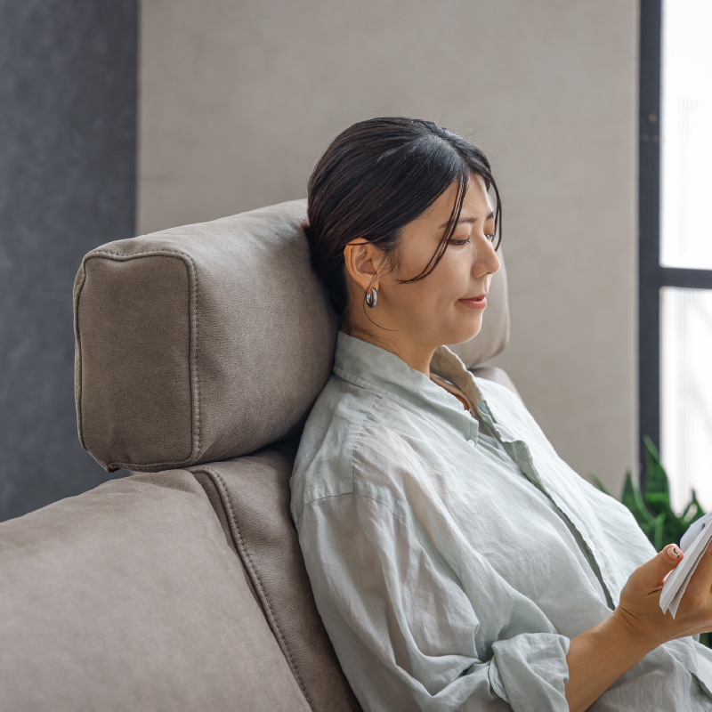 ソファと同じ生地でヘッドレストがあるだけで姿勢が楽になります。