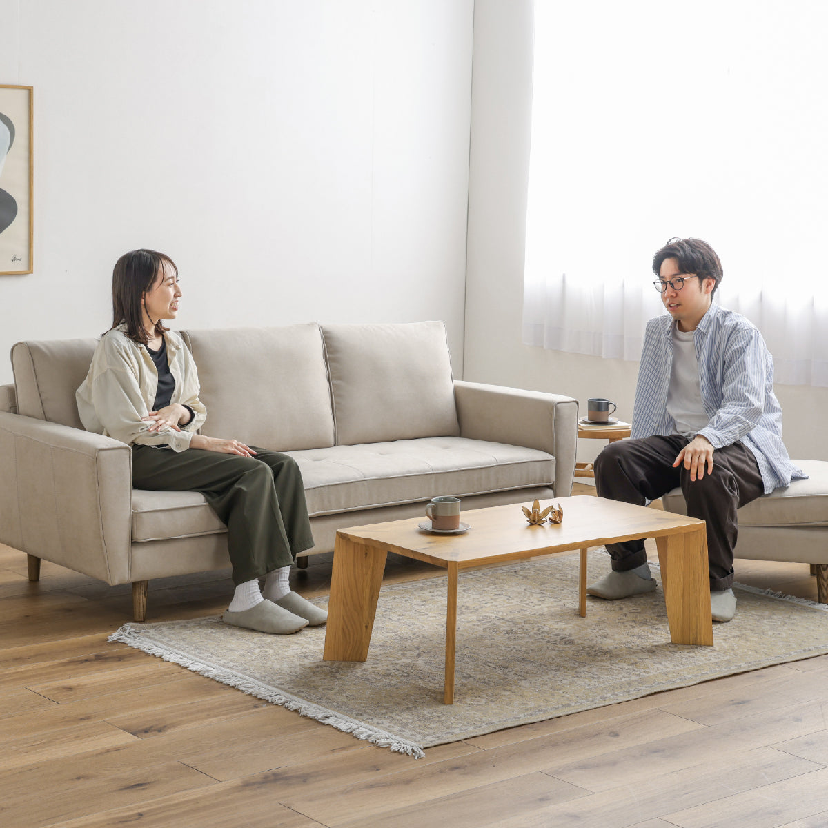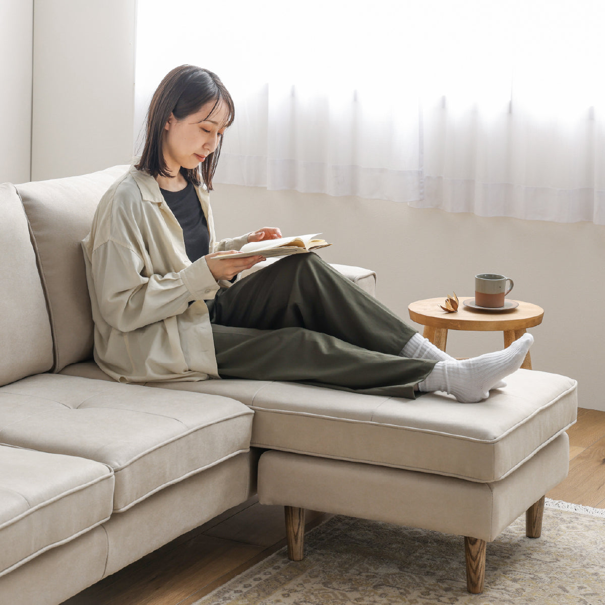 脚には天然木を使用しており、優しい色合いとナチュラルな木目がソファの印象を柔らかくしてくれます。