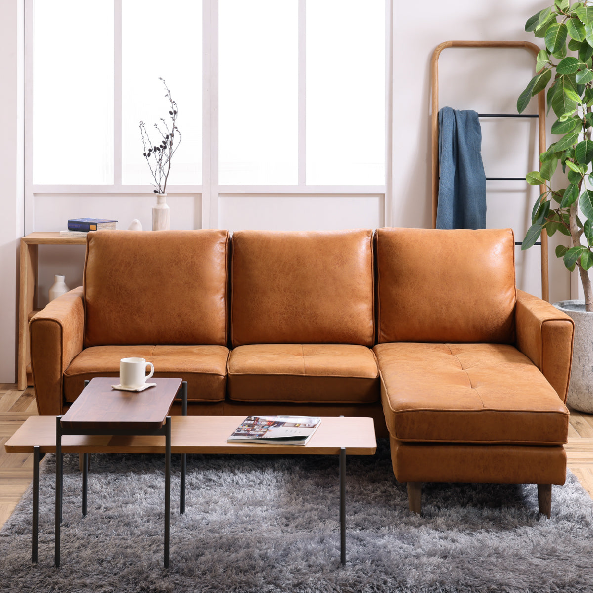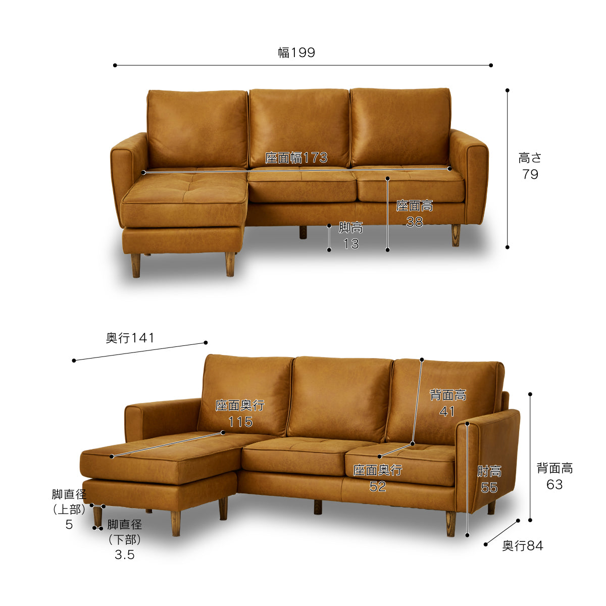 フリー カウチソファ 幅199cm LT01 キャメル / レザーテックス アニリン 商品コード 318872