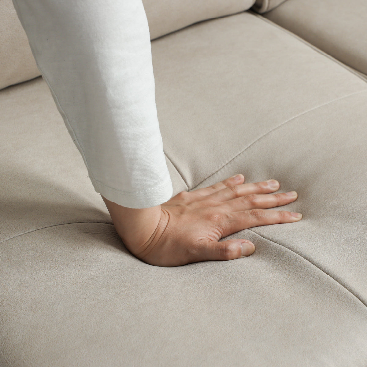 座面には高密度ウレタンフォームを使用しており、しなやかで優しく包み込まれるような座り心地です。