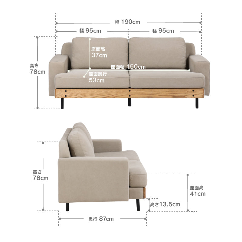 商品サイズ 幅190.0 × 奥行87.0 × 高さ78.0cm