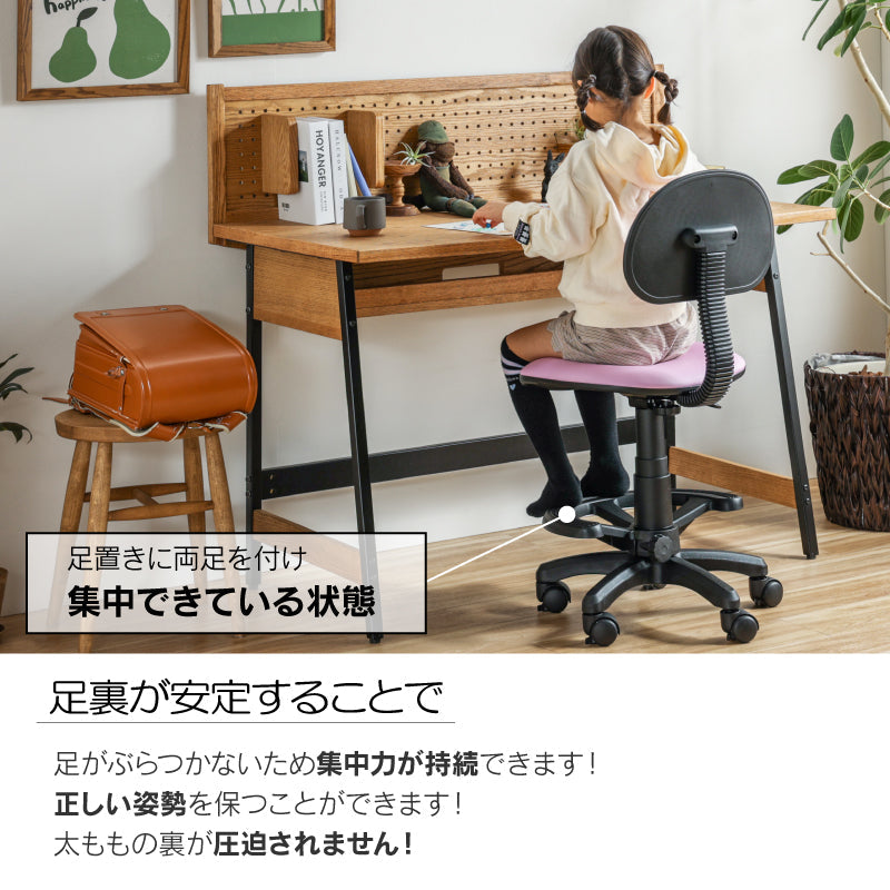 ココル④ 学習チェア 高さ調節可能 背もたれ調節可能 ファブリック ブラック / キャスターロックあり 商品コード 402890