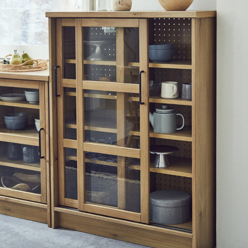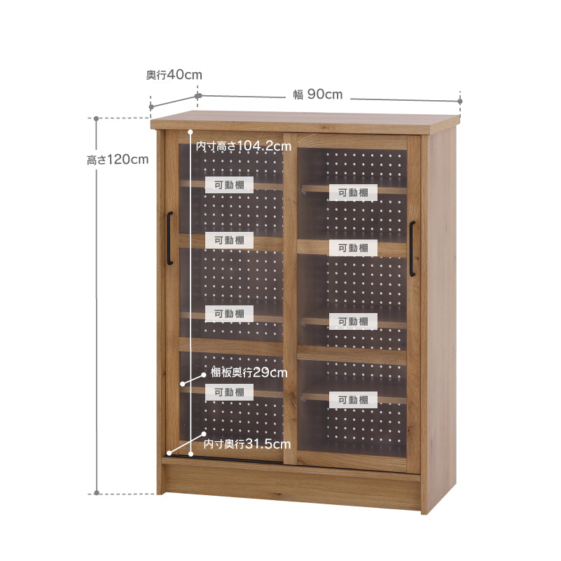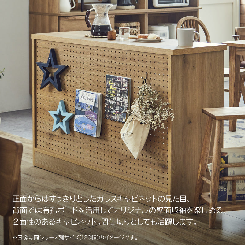 商品情報 オーク柄シートを使用したナチュラルテイストな幅120㎝のキャビネット。横開きなので、お部屋のスペースを気にせずに使用でき、キッチンカウンターとしての役割も果たします。 内部は可動棚が8枚あるので、収納する物の高さに合わせて調整が可能です。 背面は有効ボードなので壁面をおしゃれに飾りながら、お部屋の間仕切りとしても使えます。