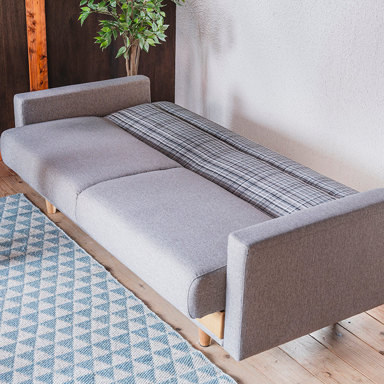 商品情報 座面下のおしゃれな木部や背と肘のかわいいチェック柄など細部までデザインにこだわりました。 座面を上げると収納スペースがあるのでブランケットなど収納でき、また、ベッドにして寝ることもできるので機能性豊富な商品です。 女性でも簡単にベッドにできます。 カラーはブルー・グレー・レザーファブリック生地ブラウンの3色を展開しています。 肘クッション2つ付きです。