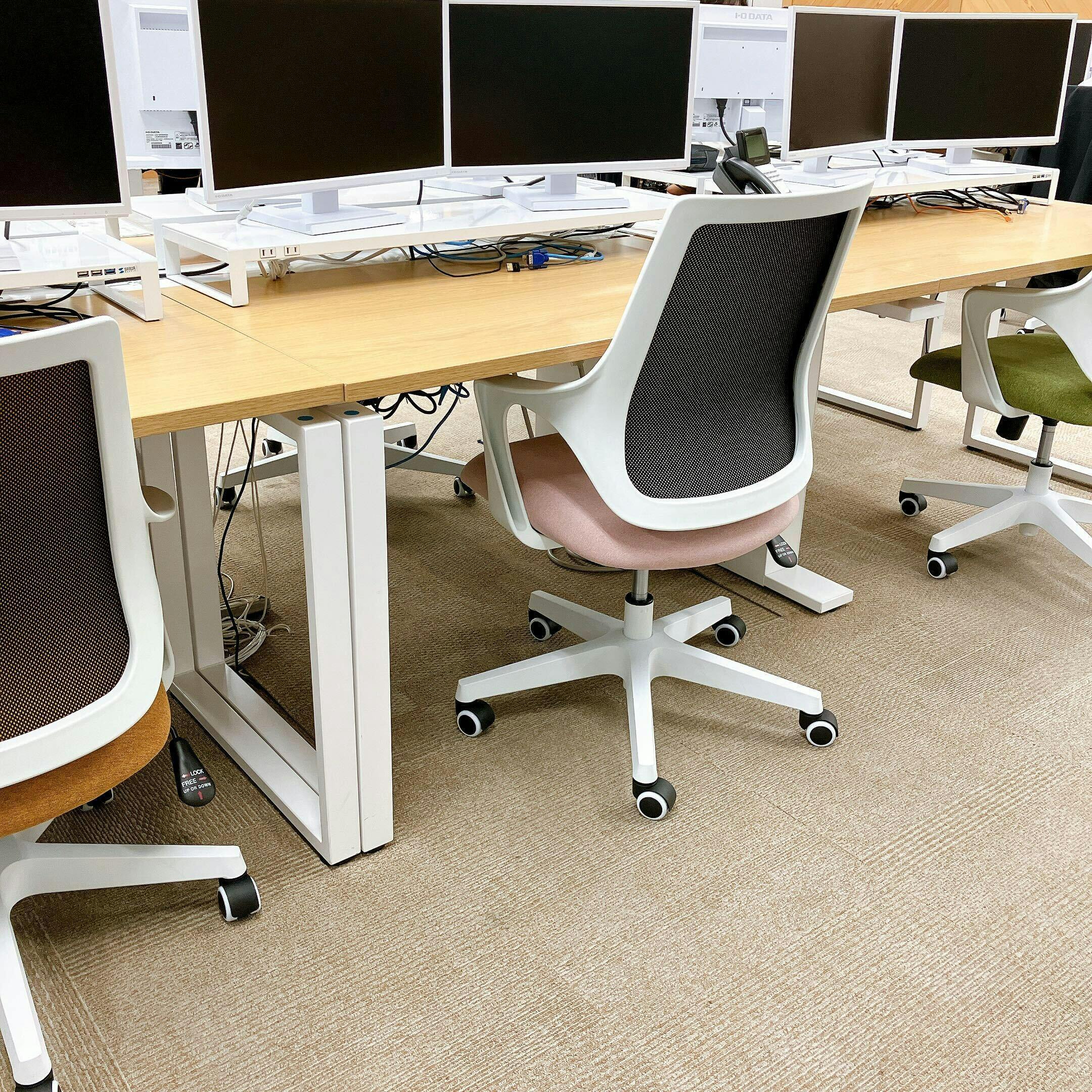 この度はチェアをご購入いただき、また素敵なレビューとお写真までお寄せいただきありがとうございます。 カラー展開を気に入っていただけたとのこと、社内の雰囲気も明るくなったとお聞きし、とても嬉しく拝見いたしました。