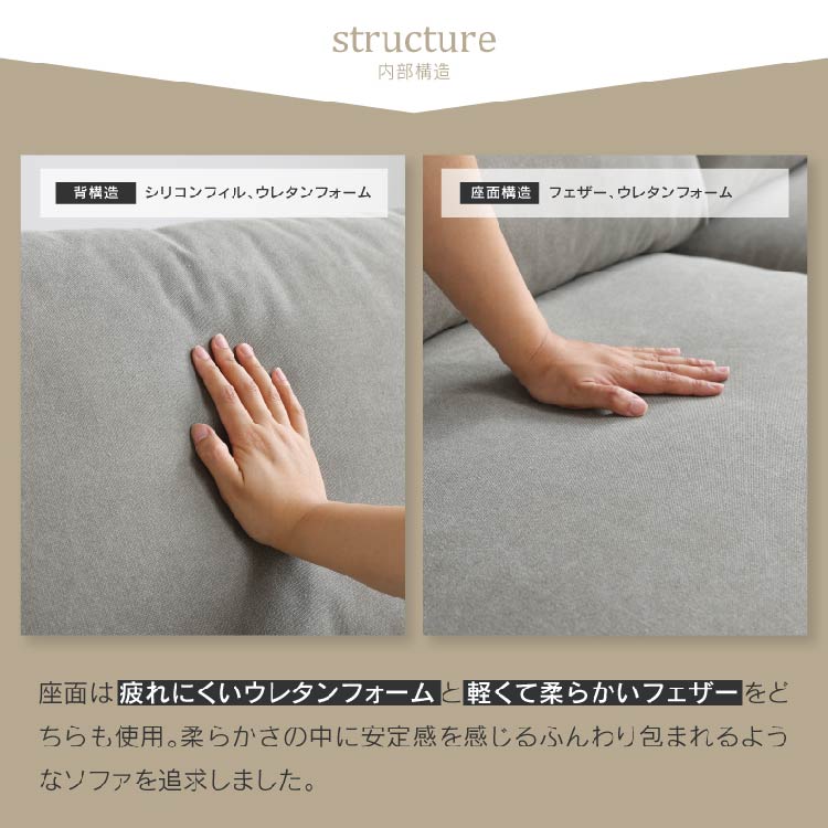 商品情報 座面フェザー使用。背もたれ宮付き。お掃除ロボット対応