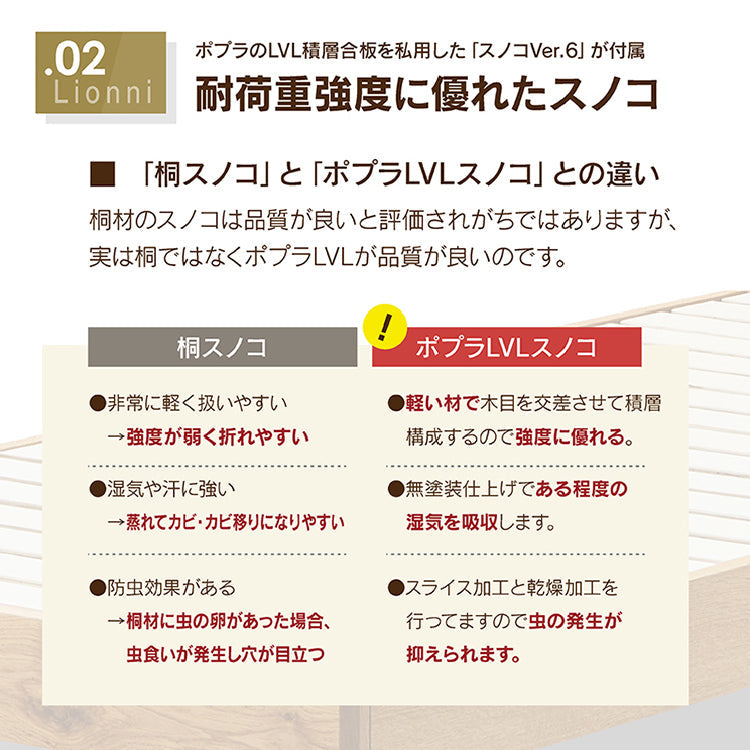 レオニ ベッドフレーム オーク / セミダブル / スノコ 商品コード 335141