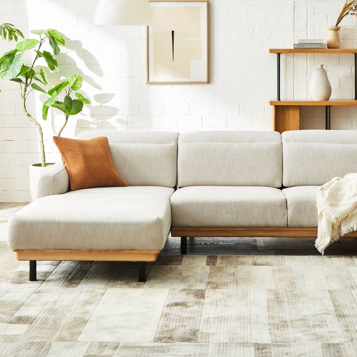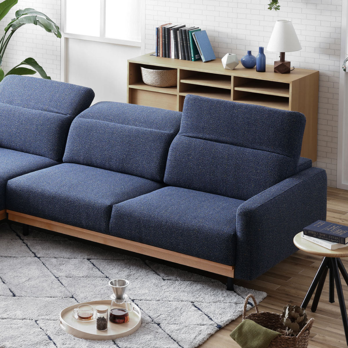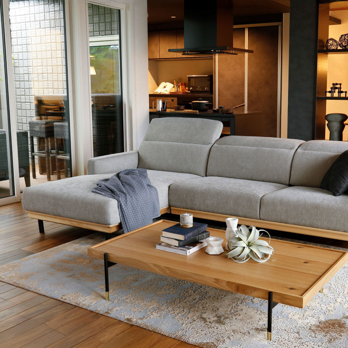 モダンデザインでありながら、脚元に木材を使用しカジュアルな雰囲気も併せ持つカウチソファ